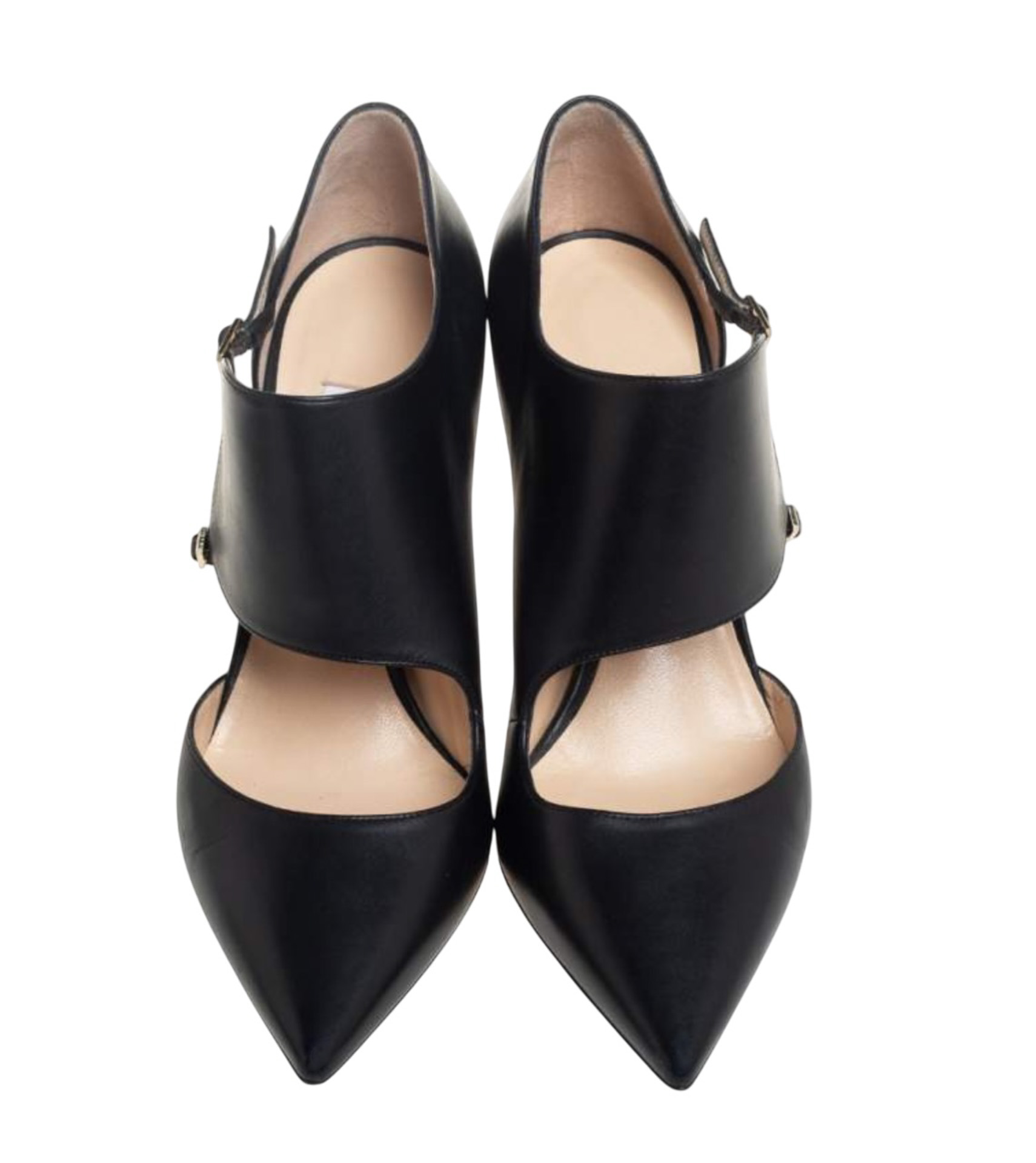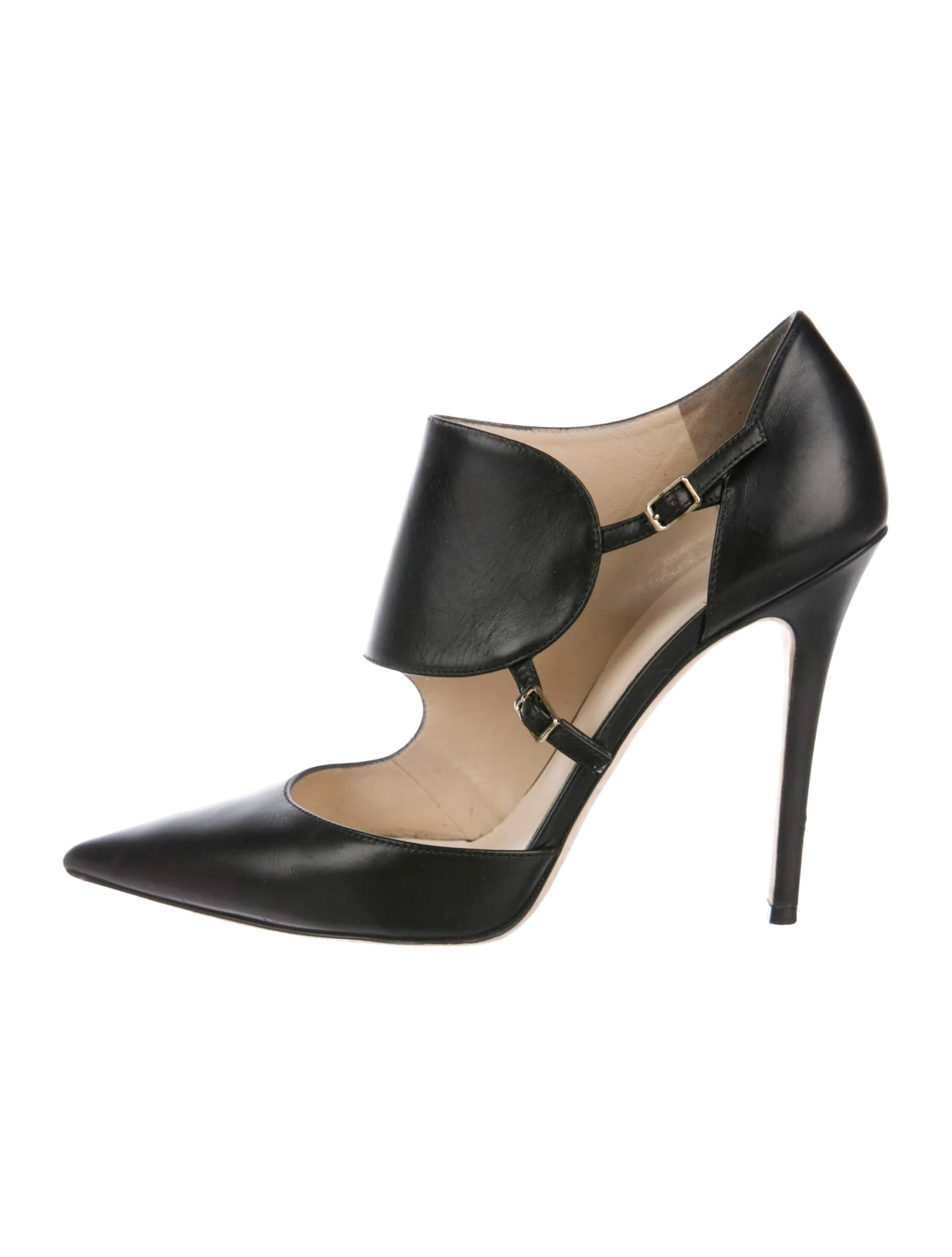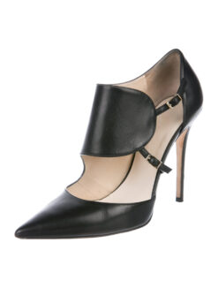 - Style: Black Leather Pointed Toe Ankle Strap Heels Pumps