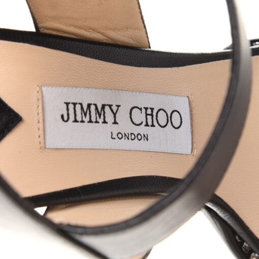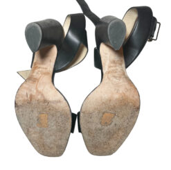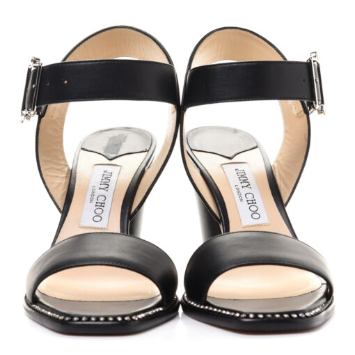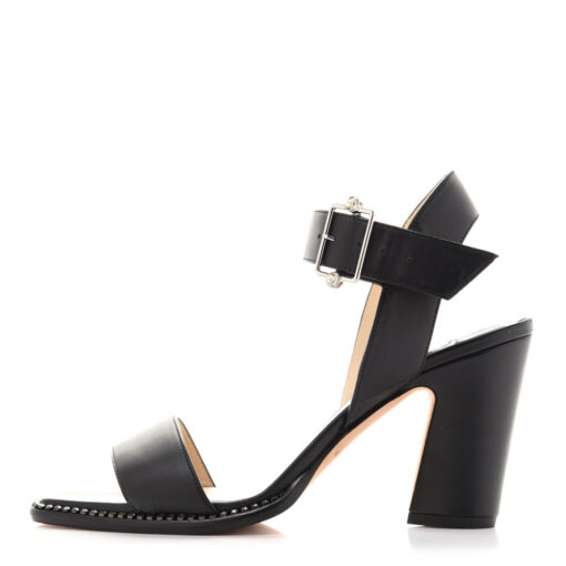 - Style: Minase Black Leather Crystal Block Heel Ankle Strap Sandals