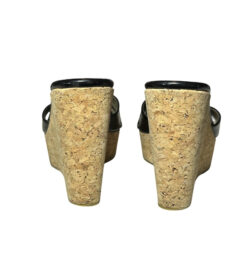 Jimmy Choo Perfume Black Patent Wedge Heels Slides Mules Sandals Size 38