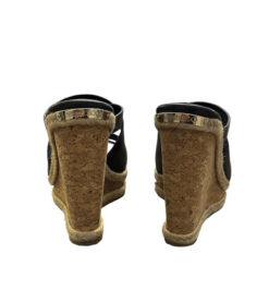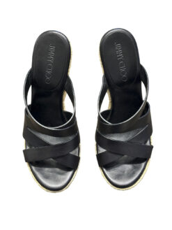 - Style: Prisma Black Leather Wedge Heels Slides Mules Sandals