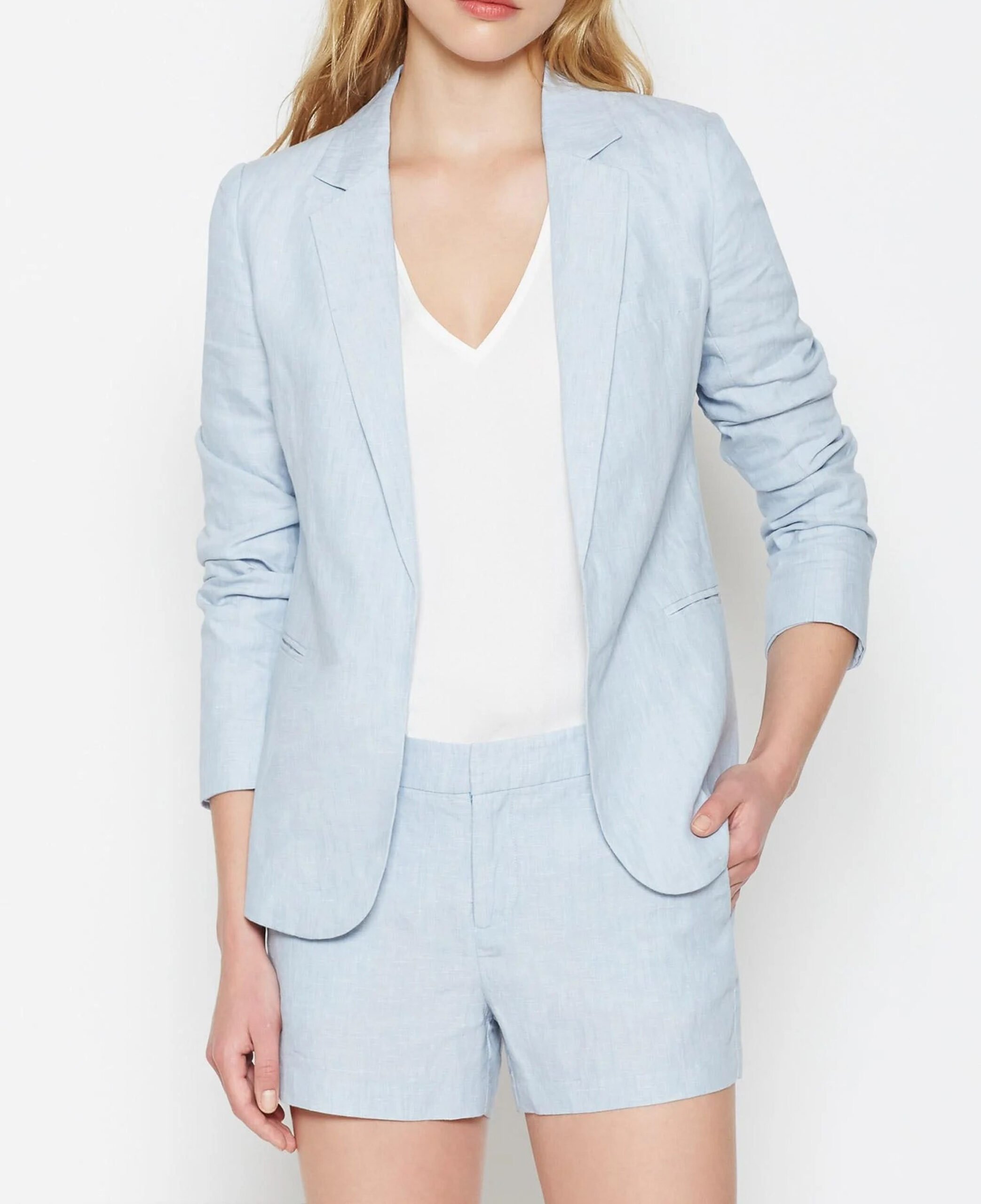 - Style: MEHIRA BLUE CHAMBRAY LINEN JACKET BLAZER