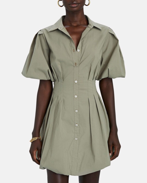 - Style: Cleo Pleated Poplin Puff Sleeve Mini Shirt Dress