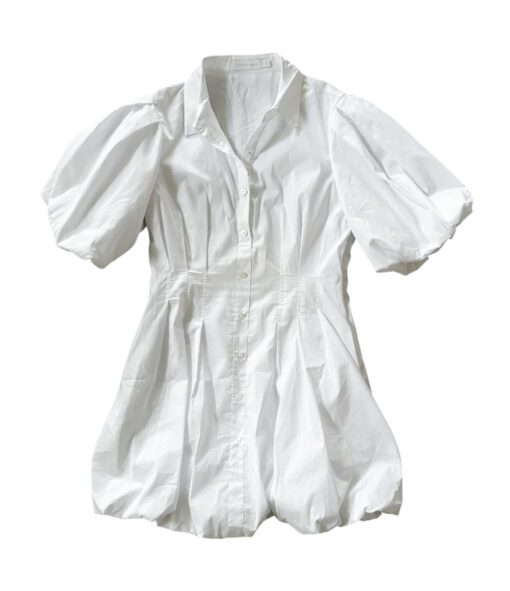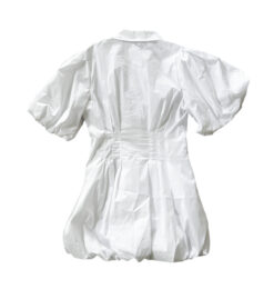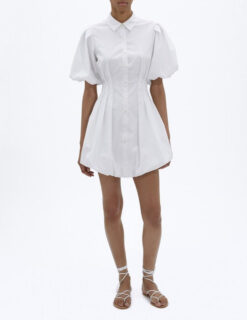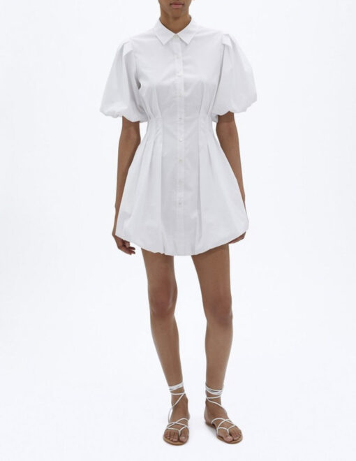 Jonathan Simkhai Cleo White Pleated Poplin Puff Sleeve Mini Shirt Dress Size 8