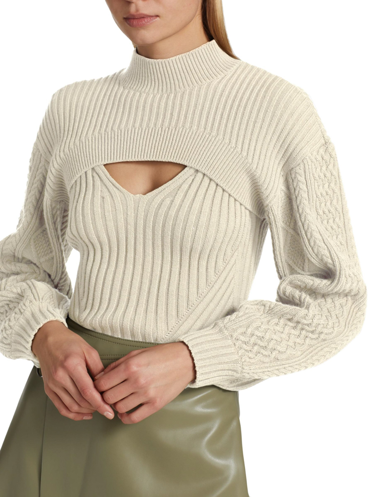 - Style: Elkie Fisherman Knit Mock Neck Sweater