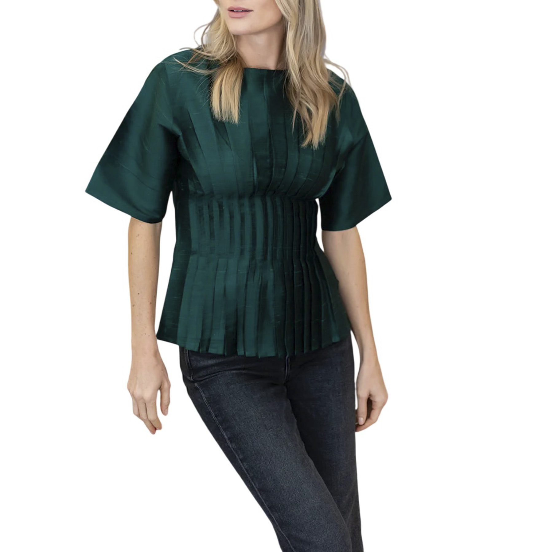 - Style: Emma Green Dupioni Silk Pintuck Peplum Top Blouse