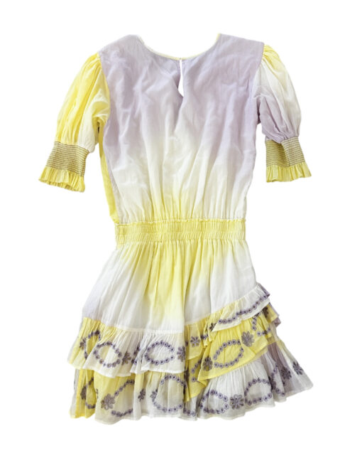 - Style: Yellow Purple Tie Dye Smocked Tiered Mini Dress