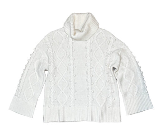 - Style: Ivory Cream Chunky Knit Pom Turtleneck Sweater