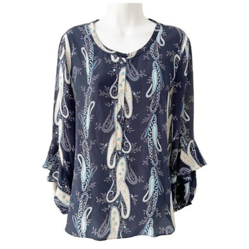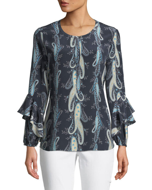 - Style: EVITA PAISLEY PRINT SILK TOP BLOUSE