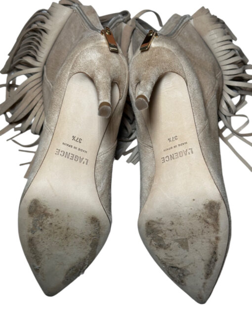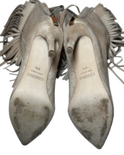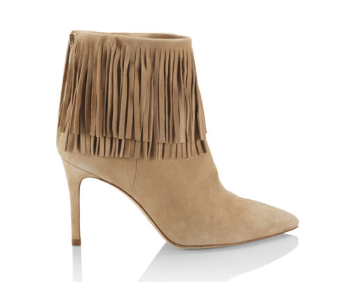 - Style: Mathilde Pointed Toe Suede Fringe Stiletto Heel Ankle Booties