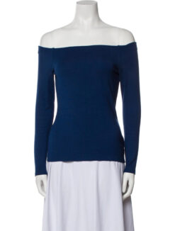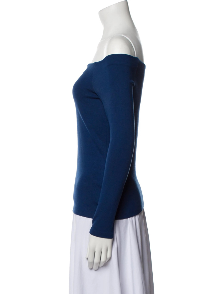 L’AGENCE NEW Cynthia Long Sleeve Off Shoulder Top Blouse Small Navy