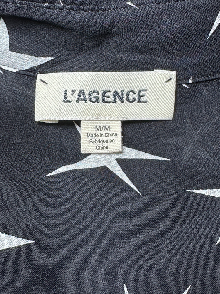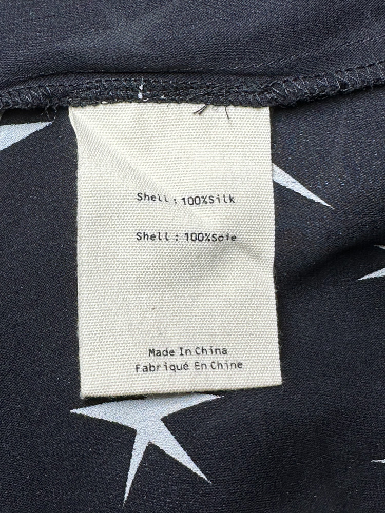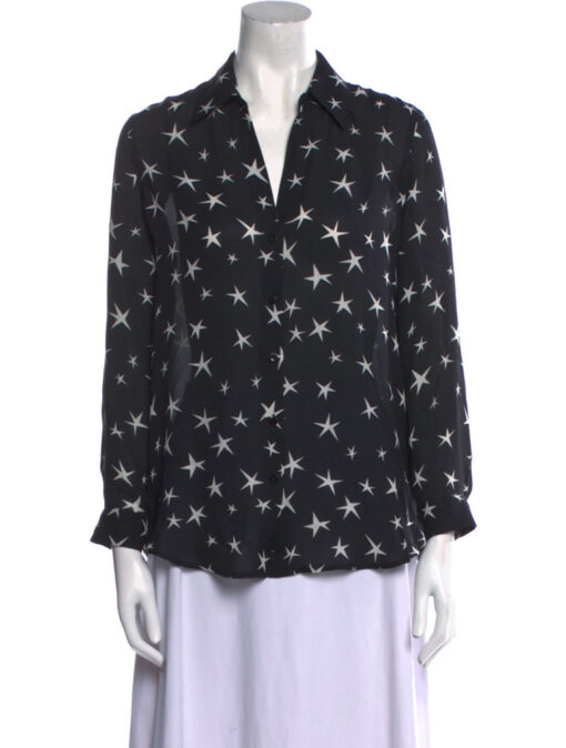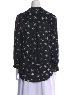 - Style: Nina Star Print Silk Long Sleeve Collared Top Blouse