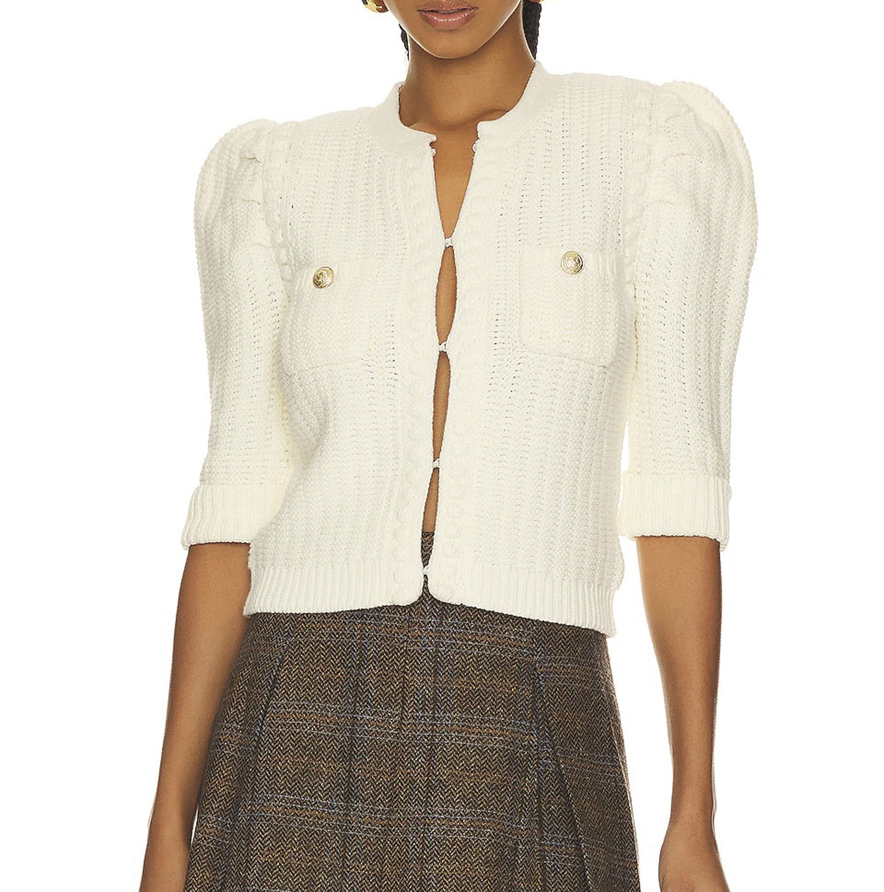 - Style: Delilah Vintage White Knit Cropped Cardigan Sweater