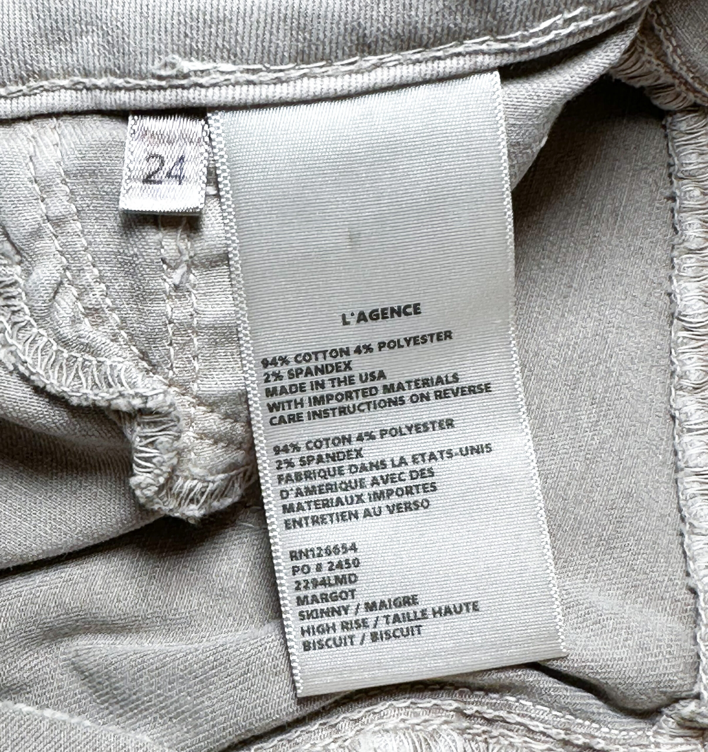 L’Agence Women’s Margot High Rise Skinny Jeans Pants 24 Beige