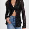 IRO Wolfie Black Crochet Knit Plunging V-Neck Crop Top Blouse Small