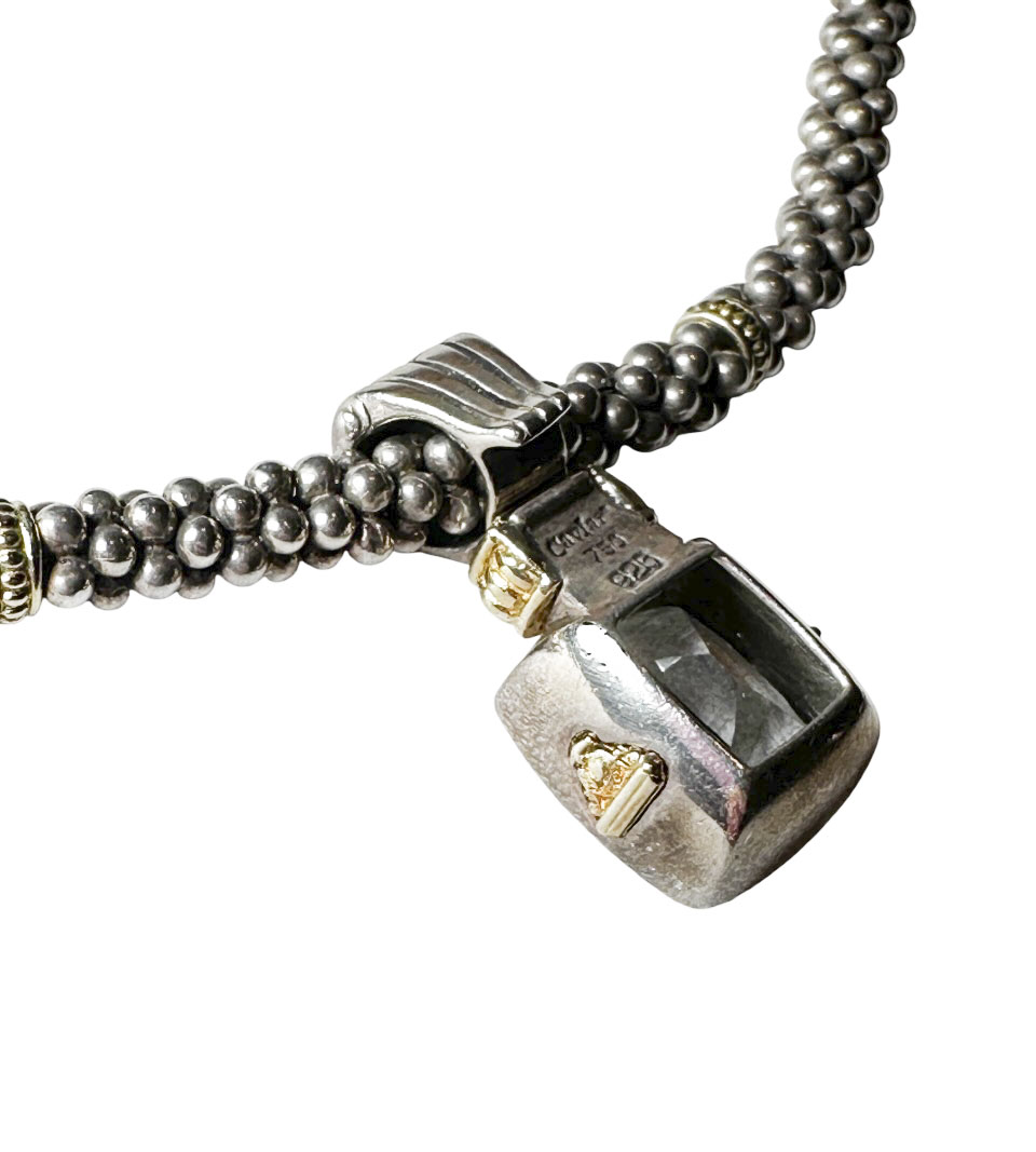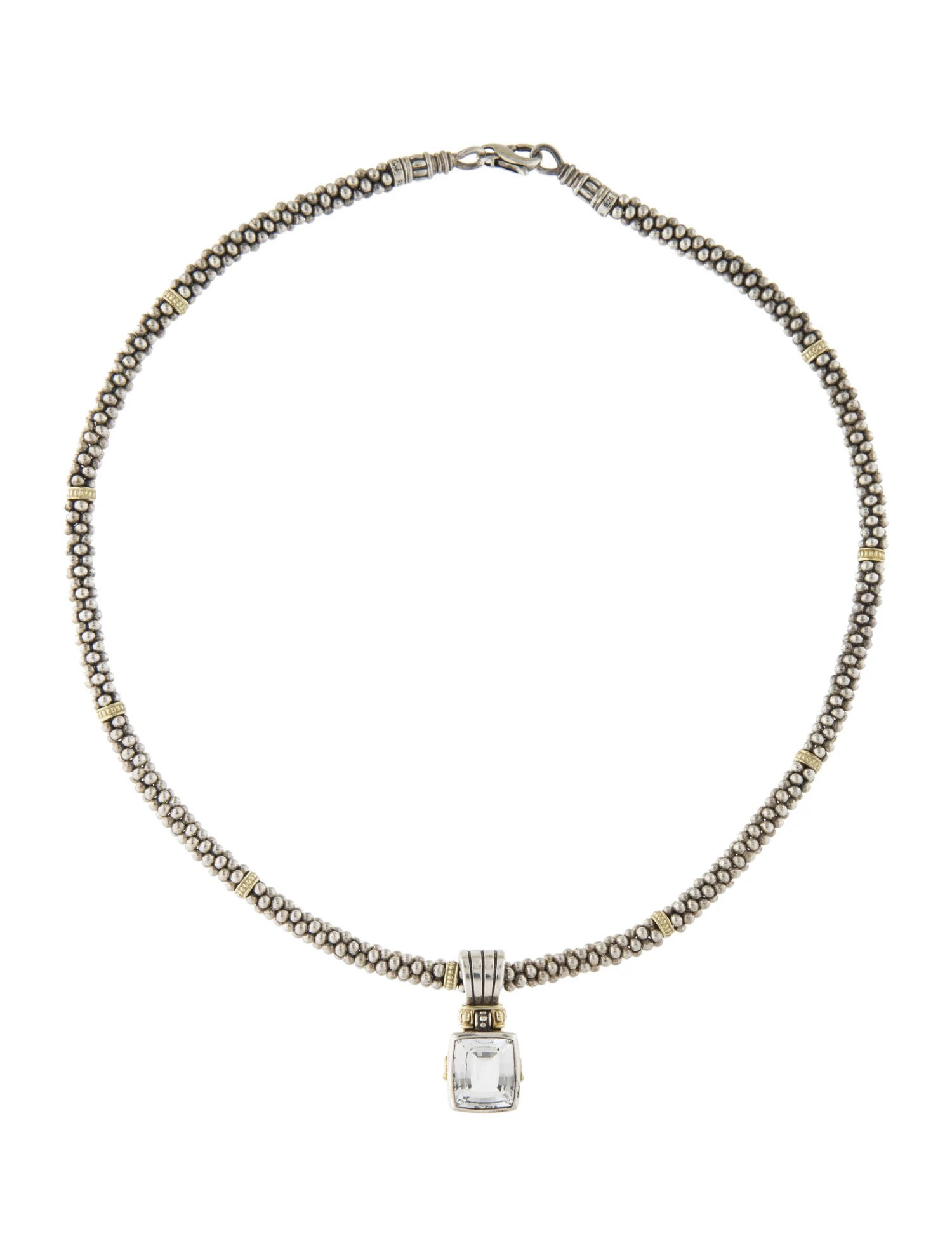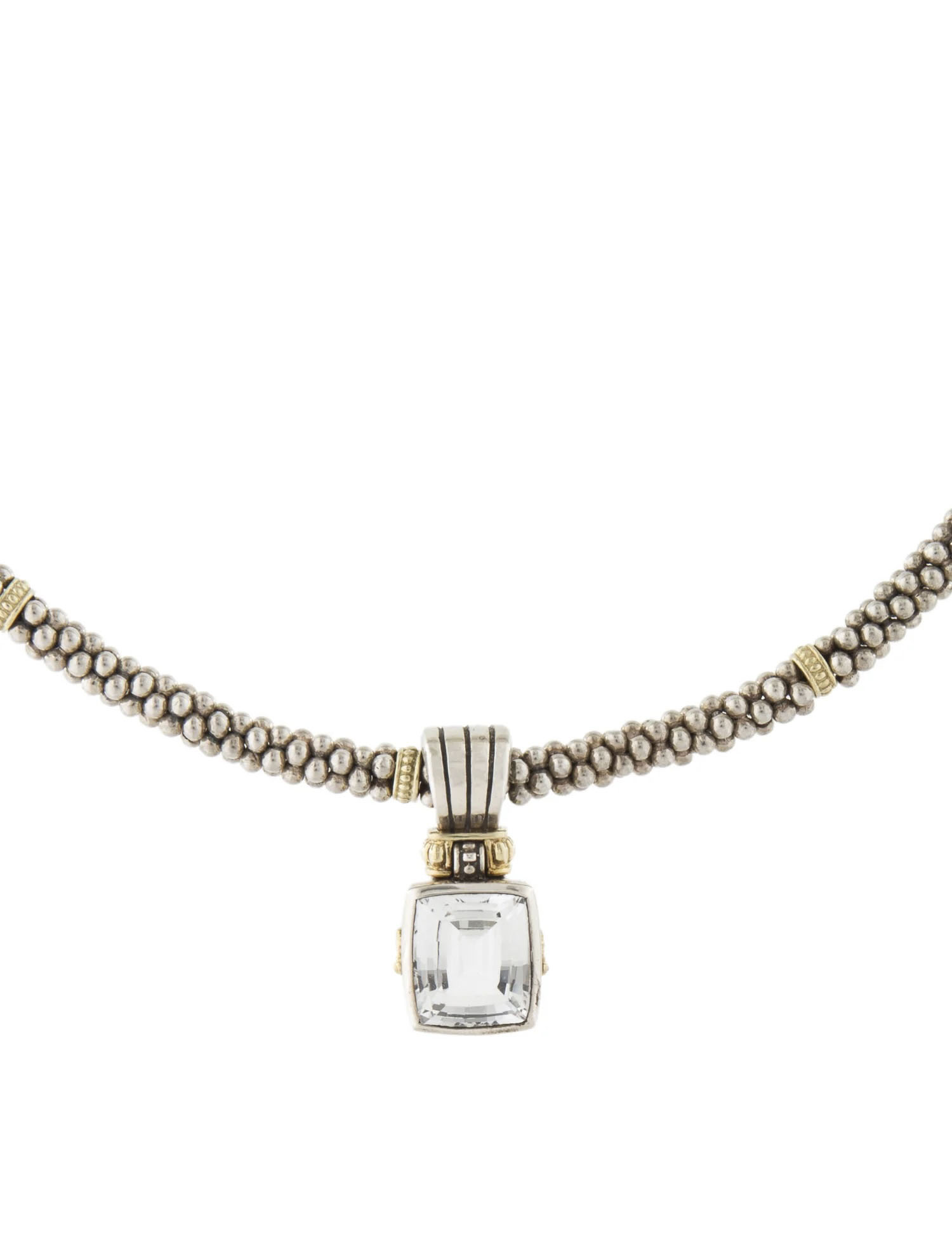 - Style: 18k Yellow Gold Sterling Silver White Topaz Caviar Pendant Necklace