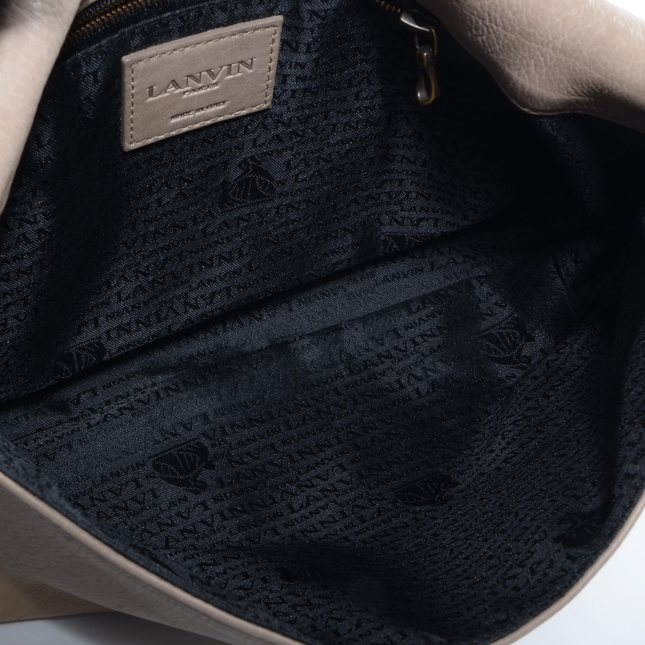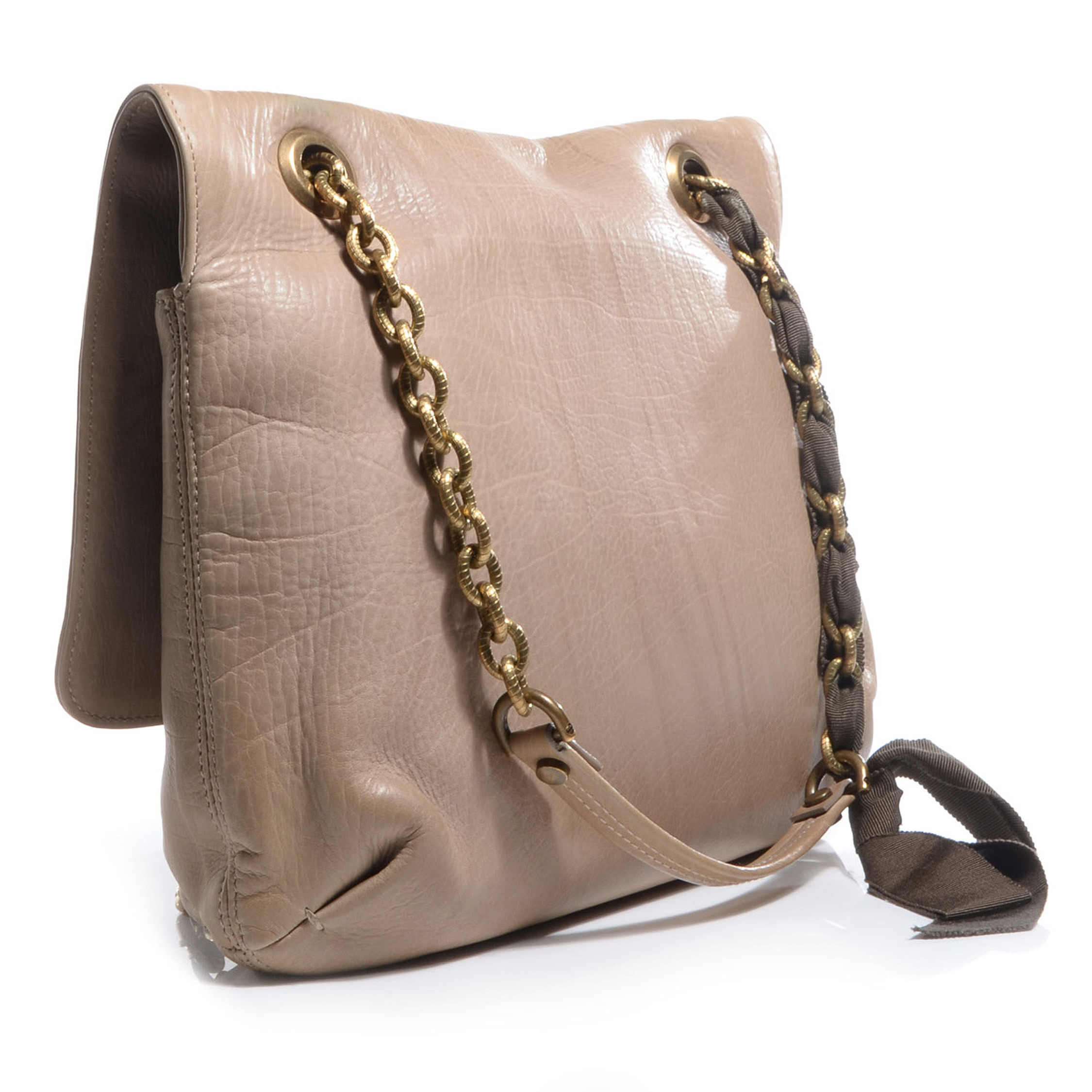 Lanvin Paris Happy Beige Leather Medium Gold Chain 2Way Shoulder Flap Bag