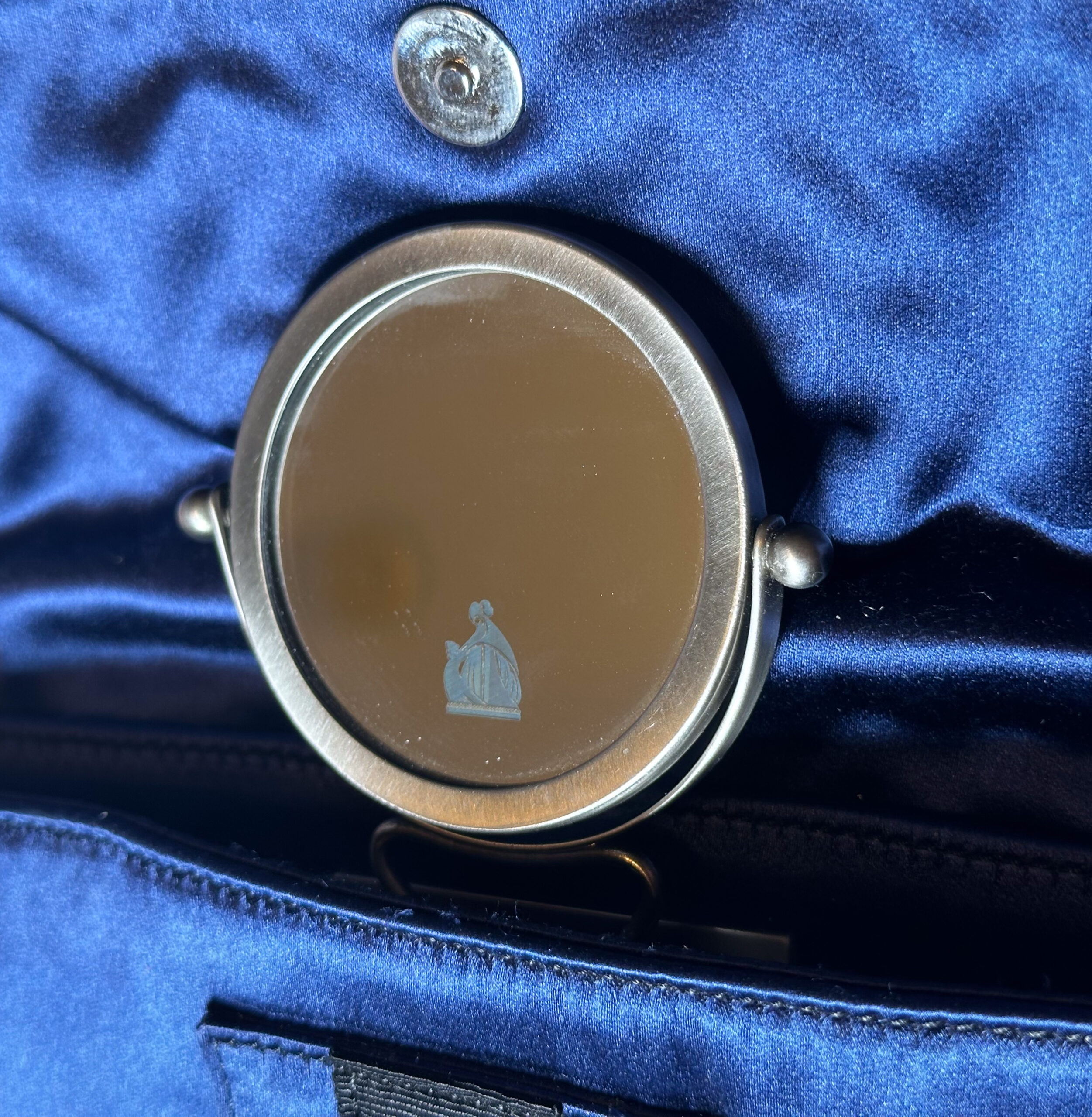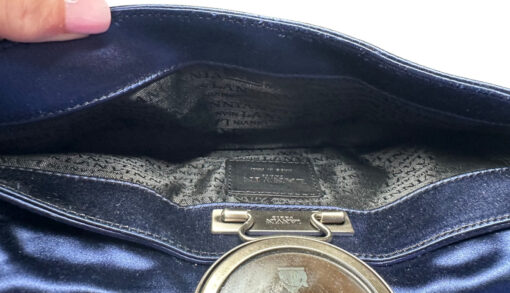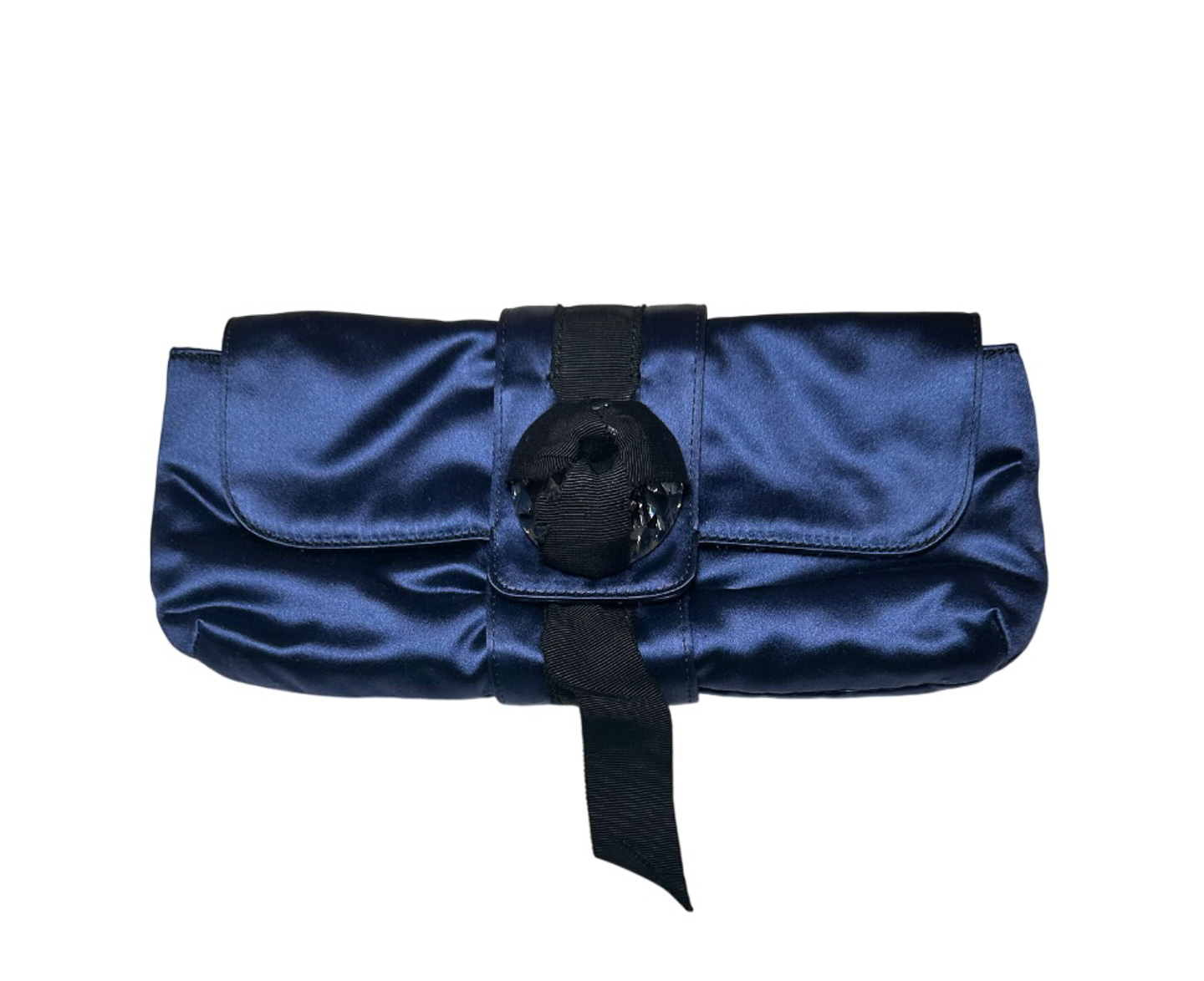 - Style: Navy & Black Satin Embellished Flap Clutch Handbag Bag
