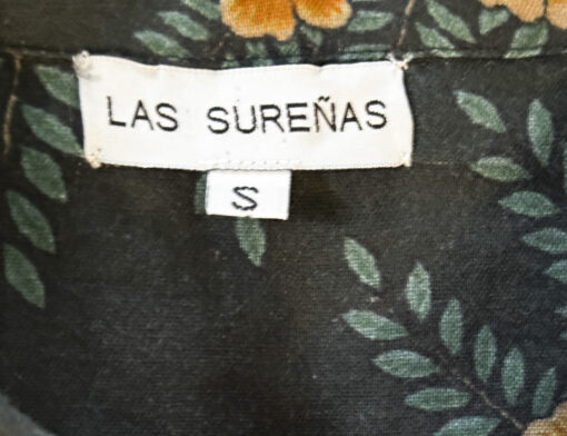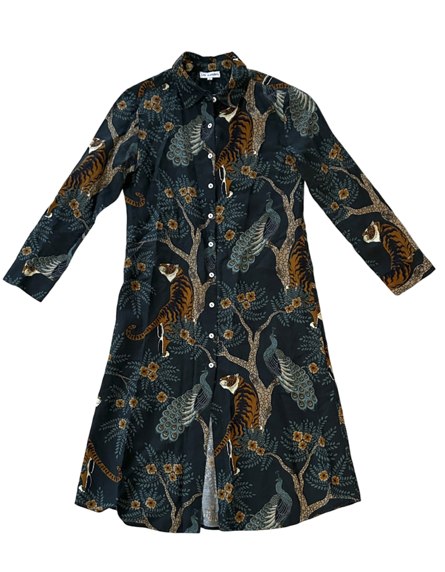 Las Surenas Green Jungle Print Linen Midi Shirt Dress Size Small
