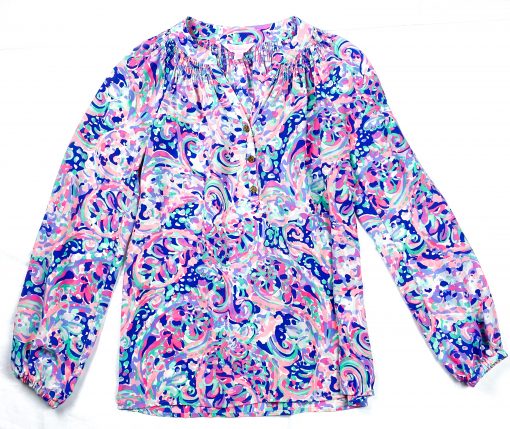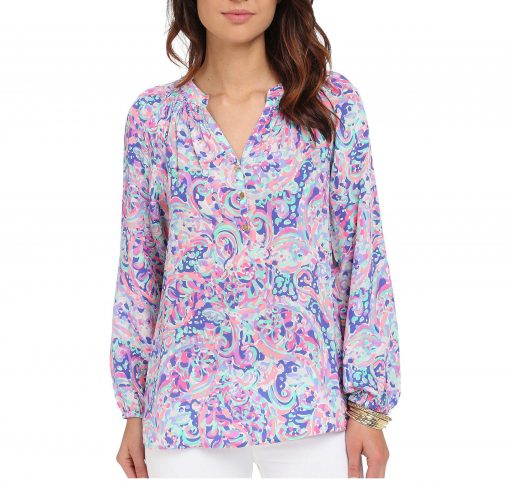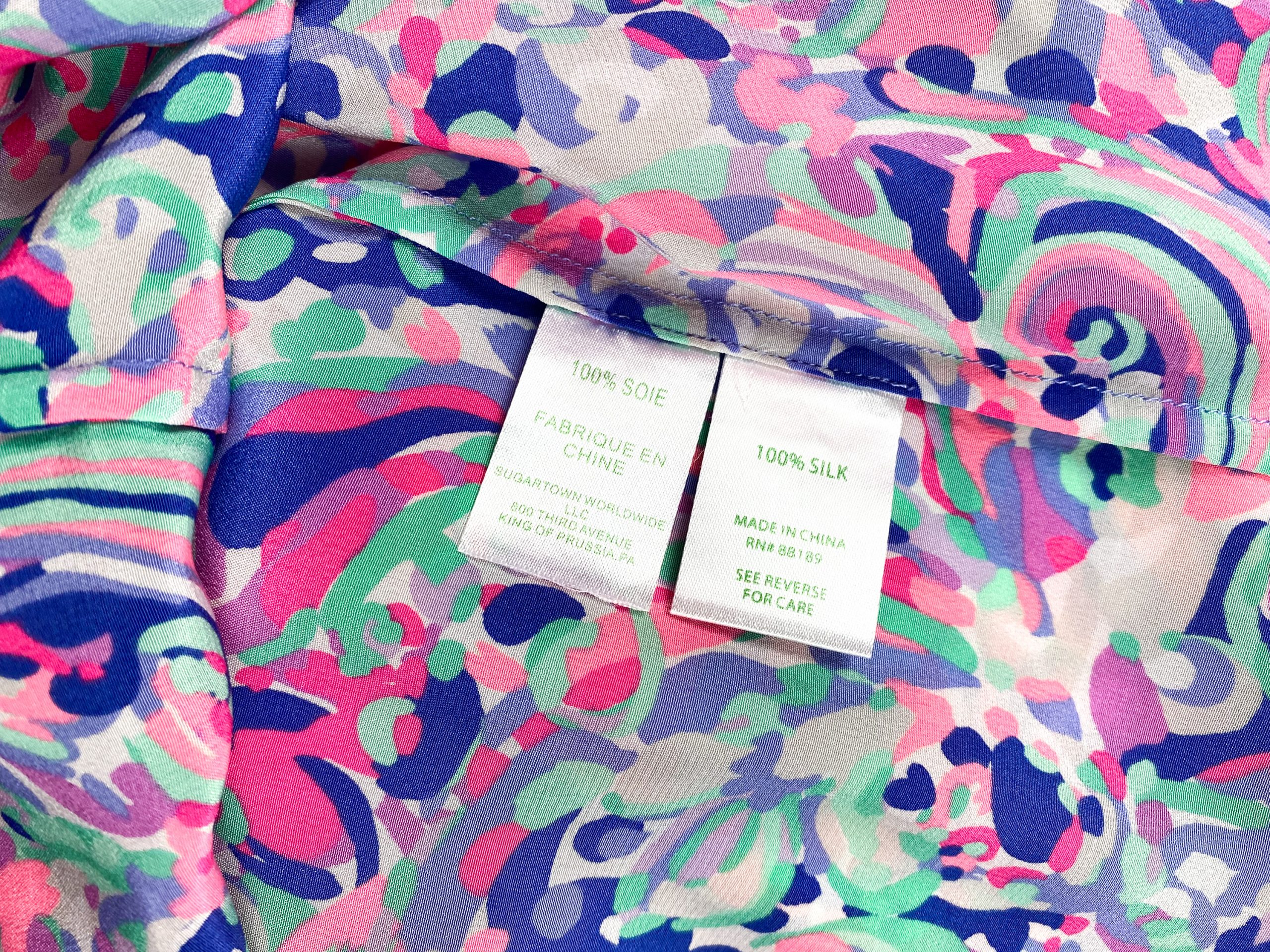 - Style: ELSA MULTI LA PLAYA PRINT SILK TOP BLOUSE