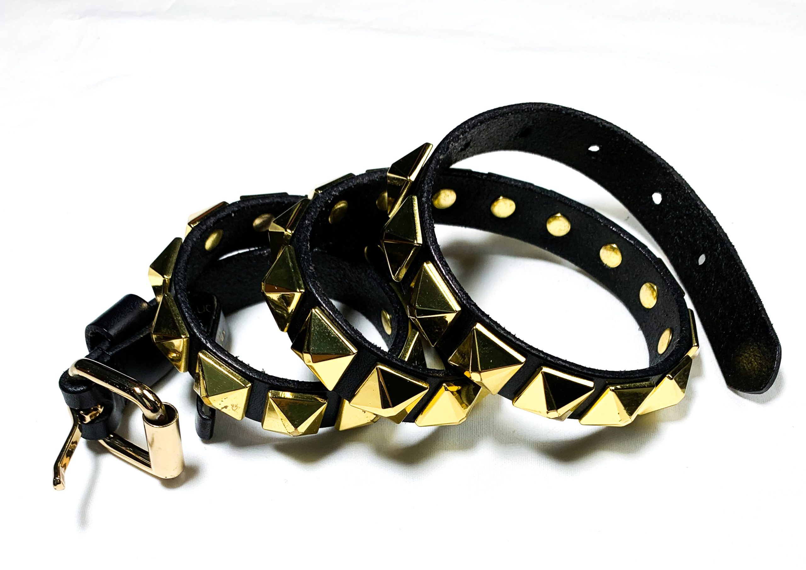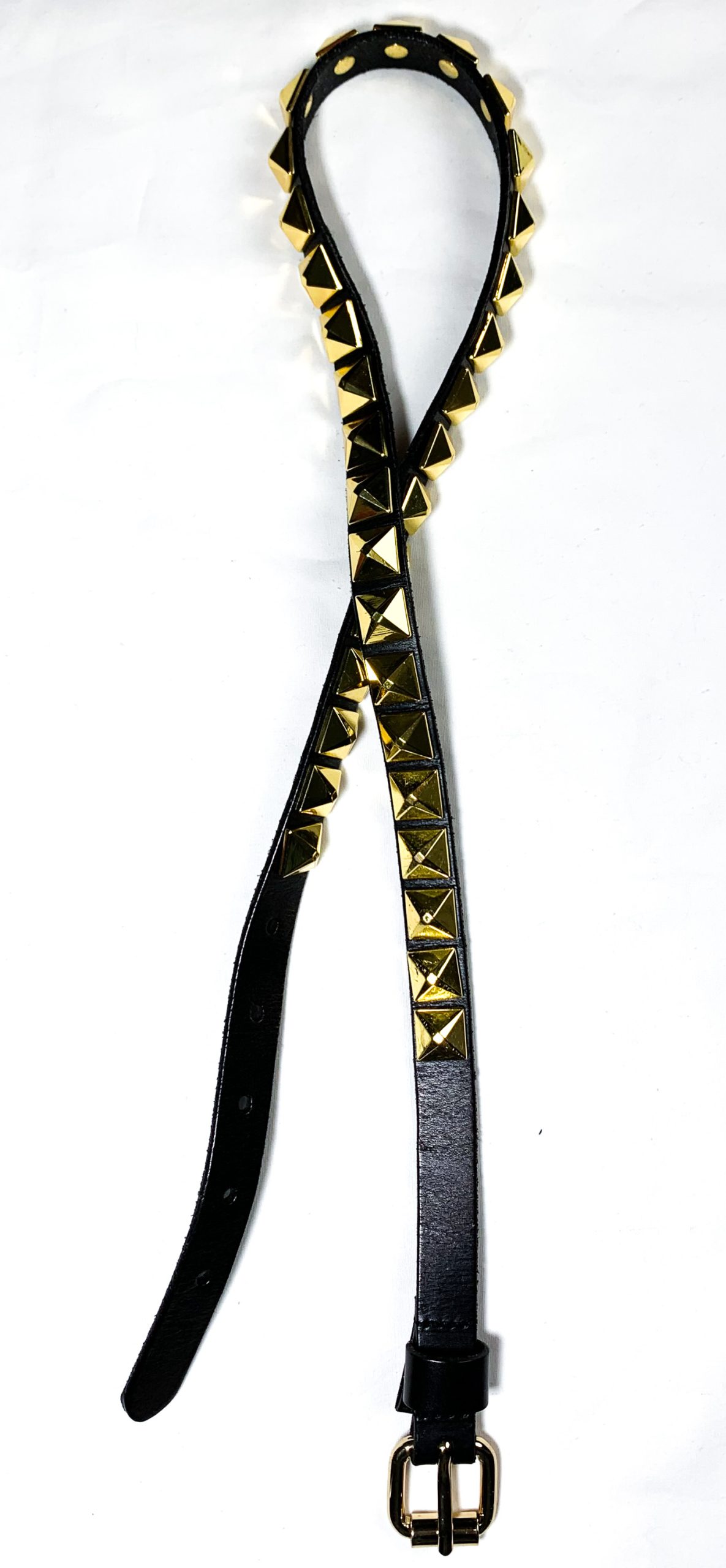 • Style: VINTAGE BLACK LEATHER PYRAMID STUDDED SKINNY BELT