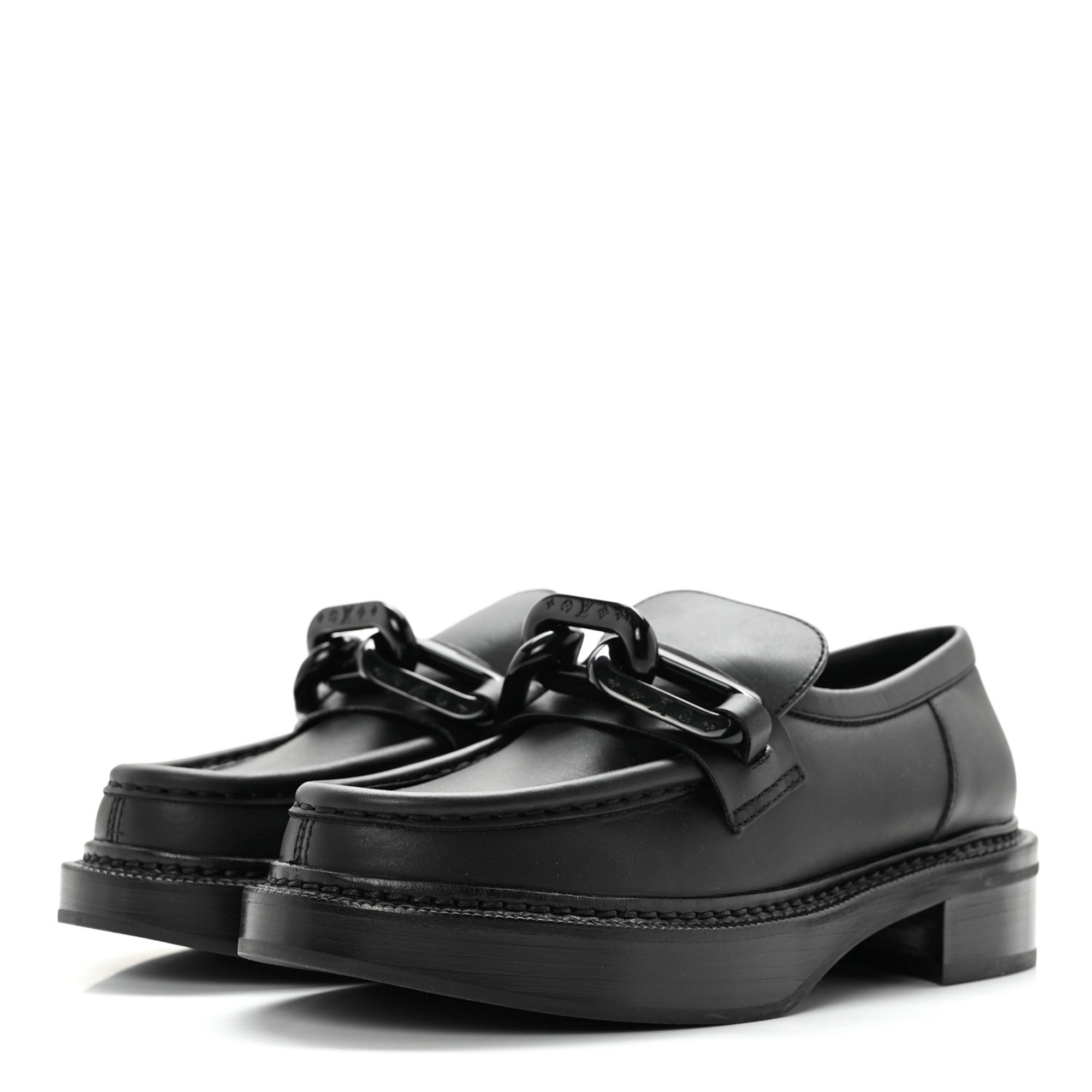 - Style: Women’s Academy Black Leather LV Monogram Chain Loafers
