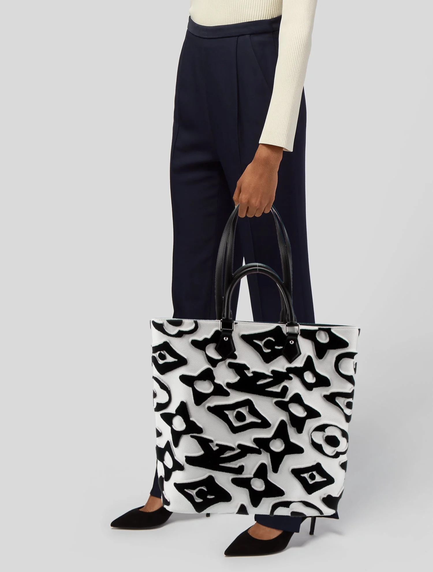 Louis Vuitton x UF Monogram Tufted White Leather Cabas Shoulder Tote Bag