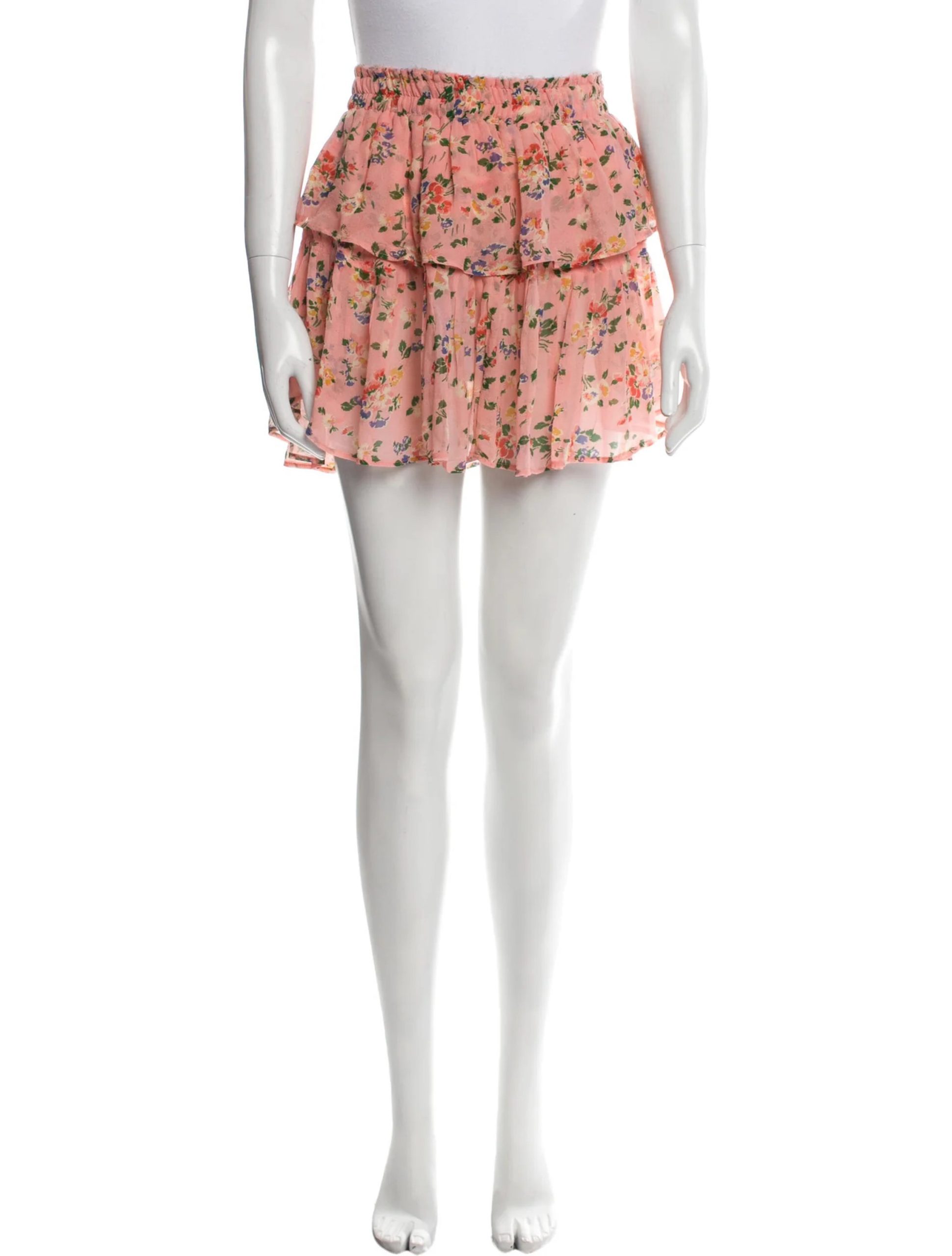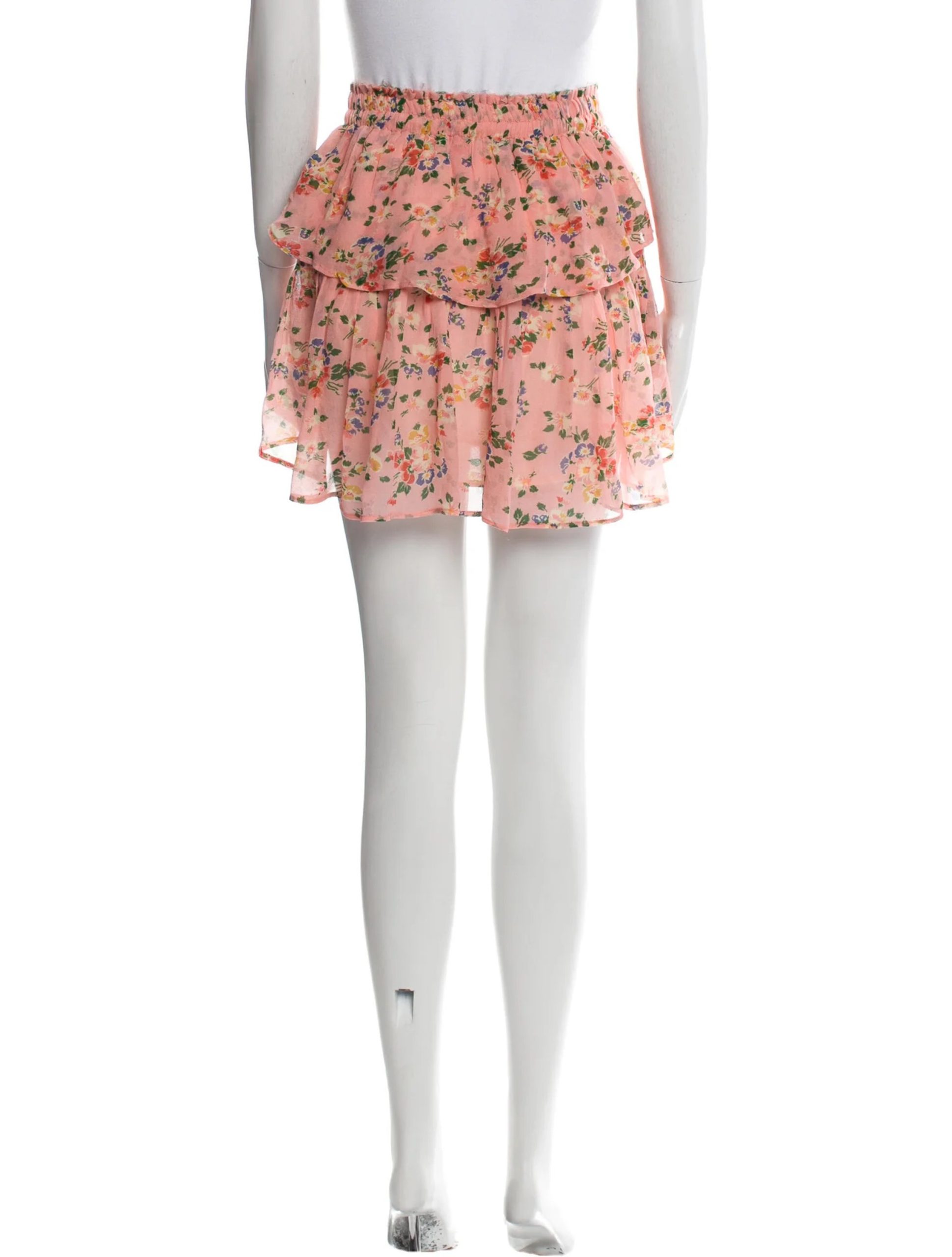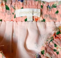 Love Shack Fancy Womens Floral Silk Ruffle Mini Short Tiered Skirt XS Pink