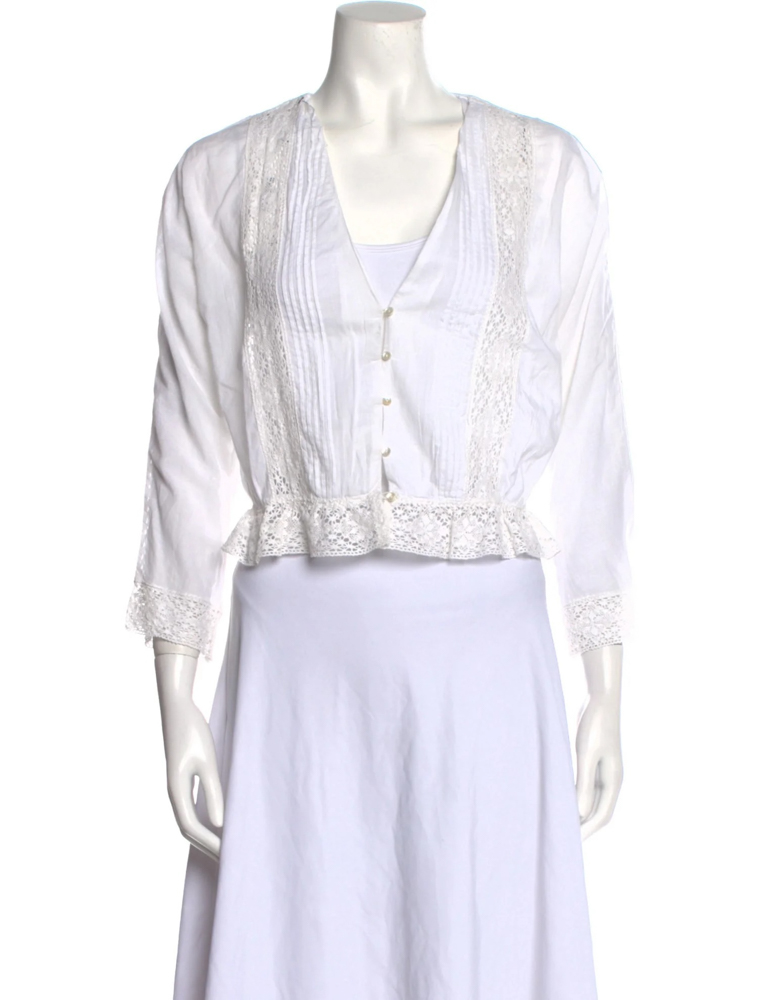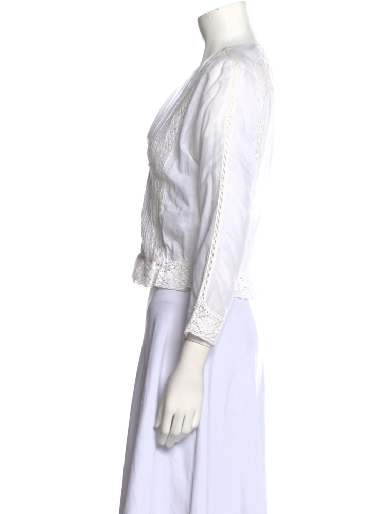- Style: White Lace Long Sleeve V-Neck Top Blouse