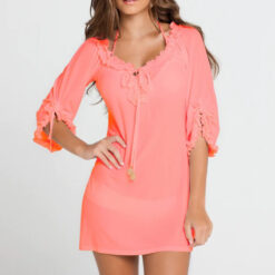 Luli Fama NEW Cosita Buena Ruffle V-Neck Long Sleeve Cover Up Mini Dress Medium
