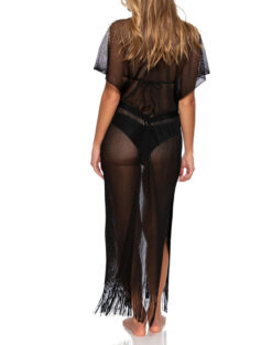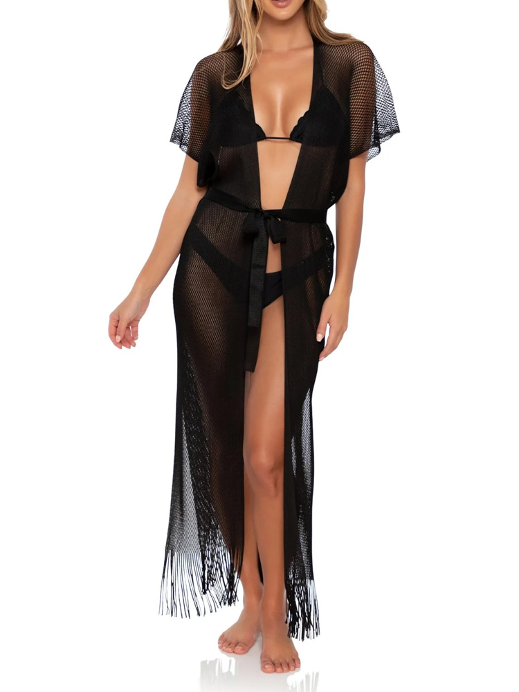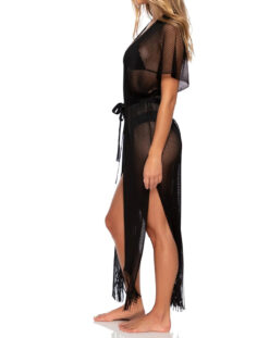 Luli Fama NWT Photo Op Queen Kimono Long Caftan Fringe Maxi Dress One Size