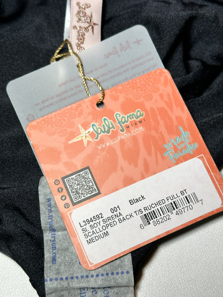 Luli Fama NWT Soy Sirena Scalloped 2 Piece Triangle Bikini Top Ruched Bottom M/L