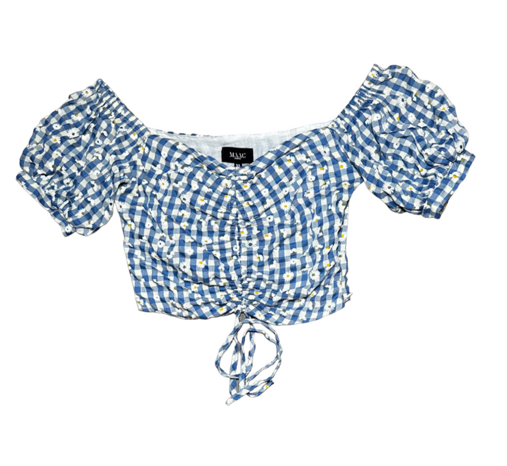 - Style: Gingham Off Shoulder Short Sleeve Crop Top Blouse