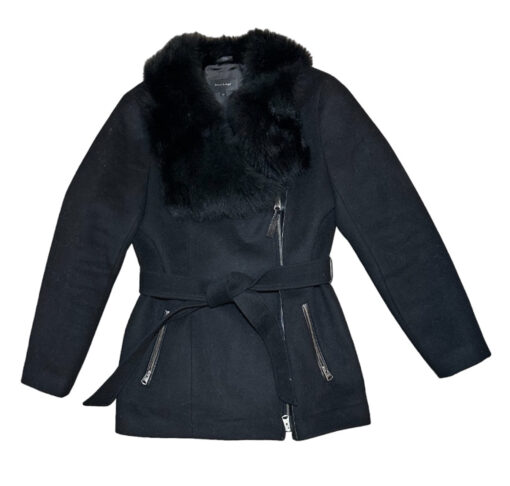- Style: Black Wool Sheepskin Fur Collar Parka Coat