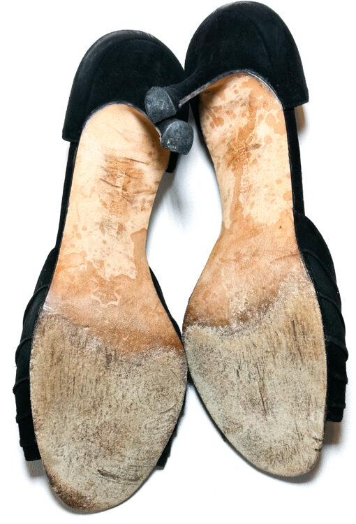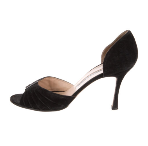 - Style: BLACK SUEDE D’ORSAY PEEP TOE PUMPS HEELS