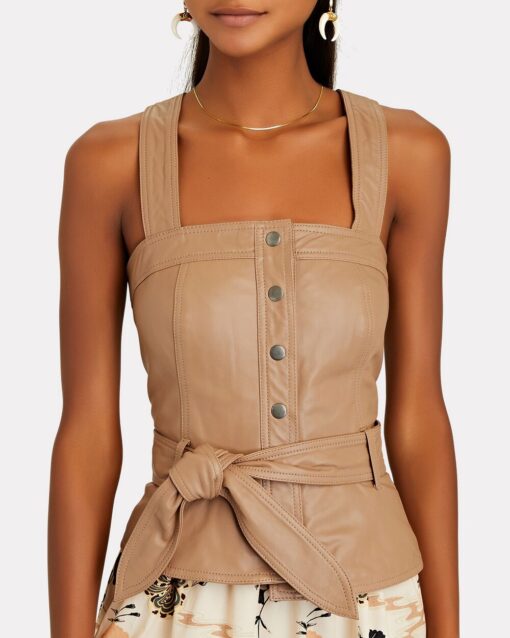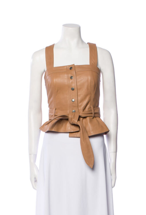 - Style: Marty Lambskin Leather Sleeveless Vest Top Blouse