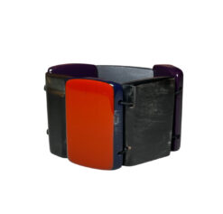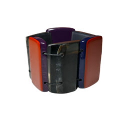Marni Stretch Resin Lucite Reversible Wide Cuff Bracelet Silver Purple Orange