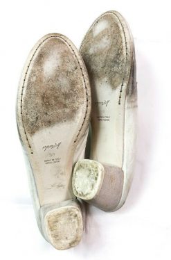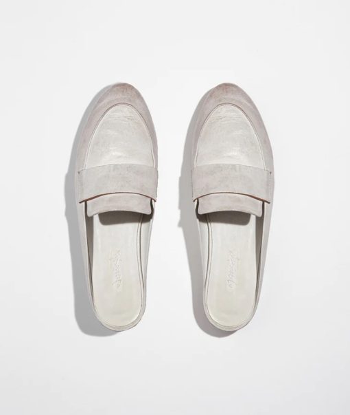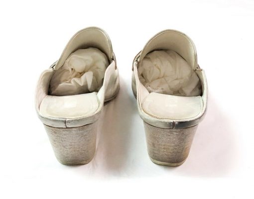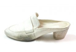 - Style: WHITE DISTRESSED LEATHER SLIDES MULES