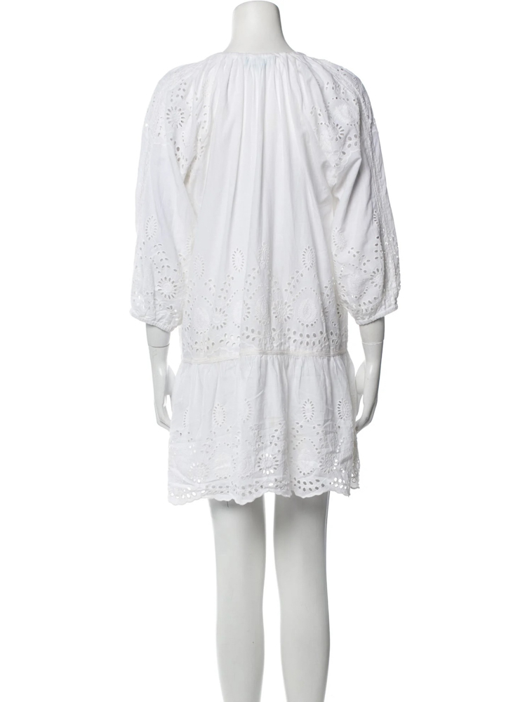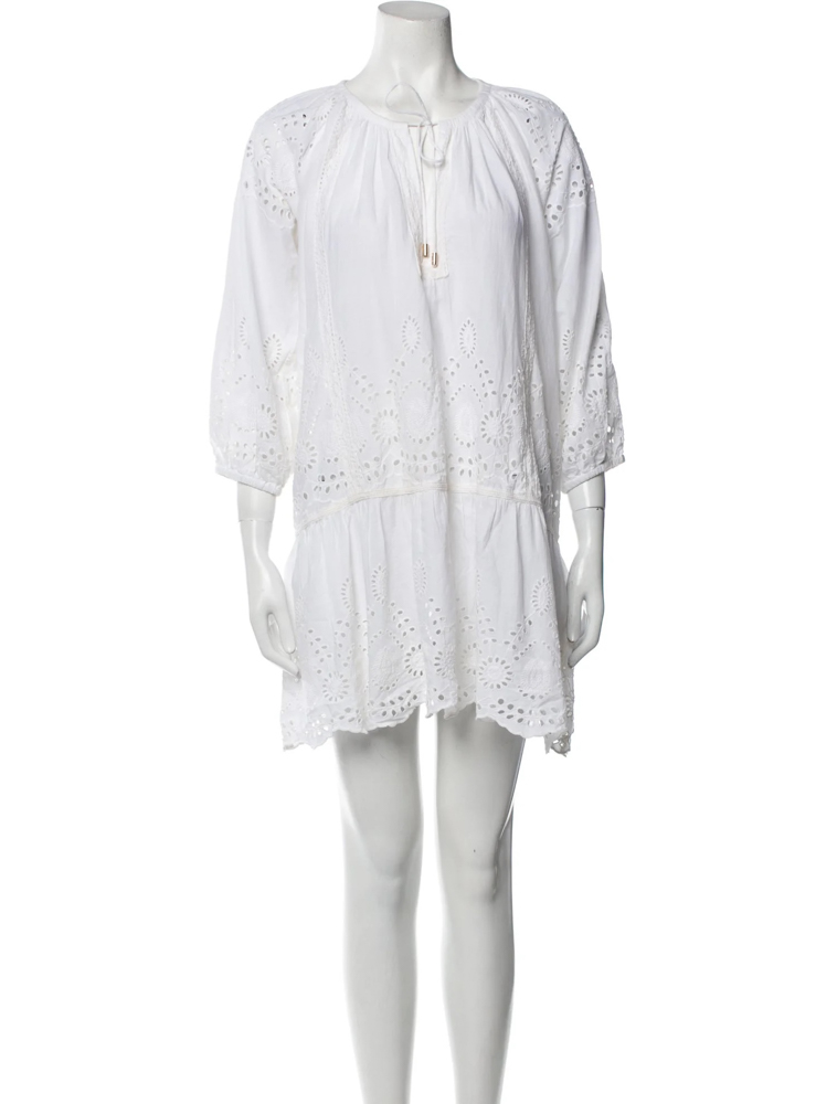 Melissa Odabash Ashley White Broderie Drop Waist Mini Dress Large