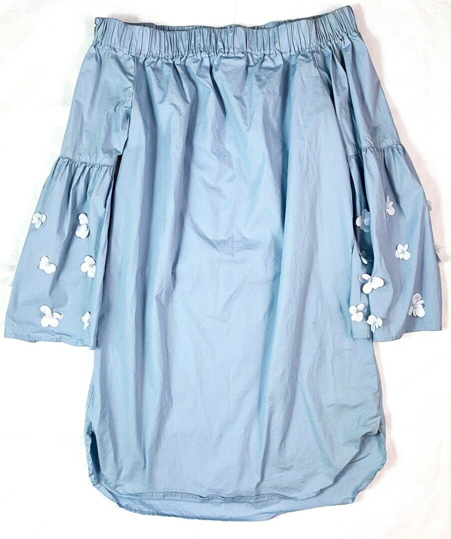 - Style: BLUE EMBELLISHED BELL SLEEVE OFF SHOULDER MINI DRESS