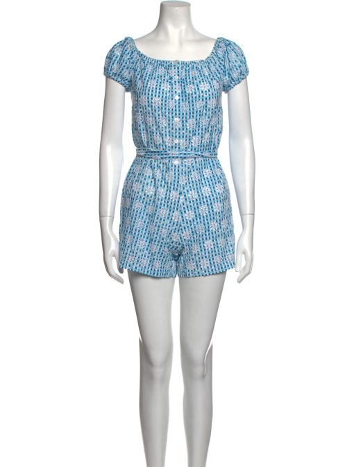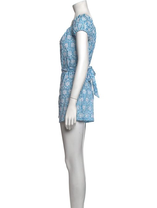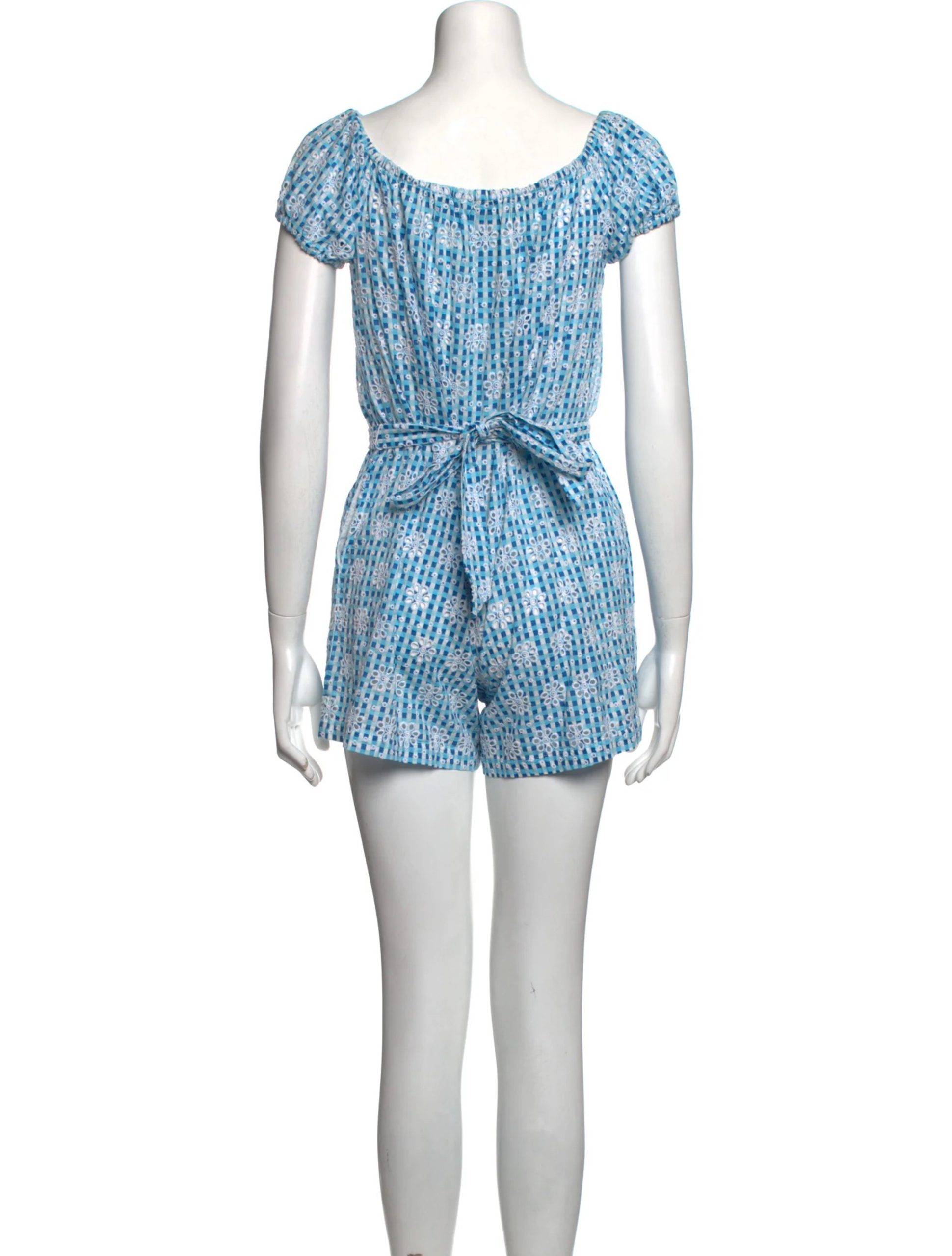 - Style: BLUE CHECK EYELET COTTON PLAYSUIT SHORTS ROMPER