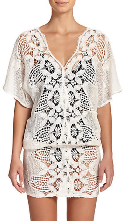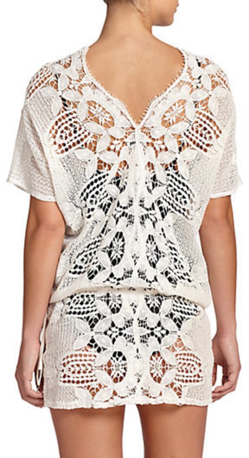 MIGUELINA KATYA WHITE SCALLOPED LACE MINI COVER UP DRESS SIZE XS