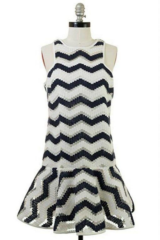 MILLY Jillian Chevron Illusion Jacquard Mini Flare Dress Size 4 Navy White