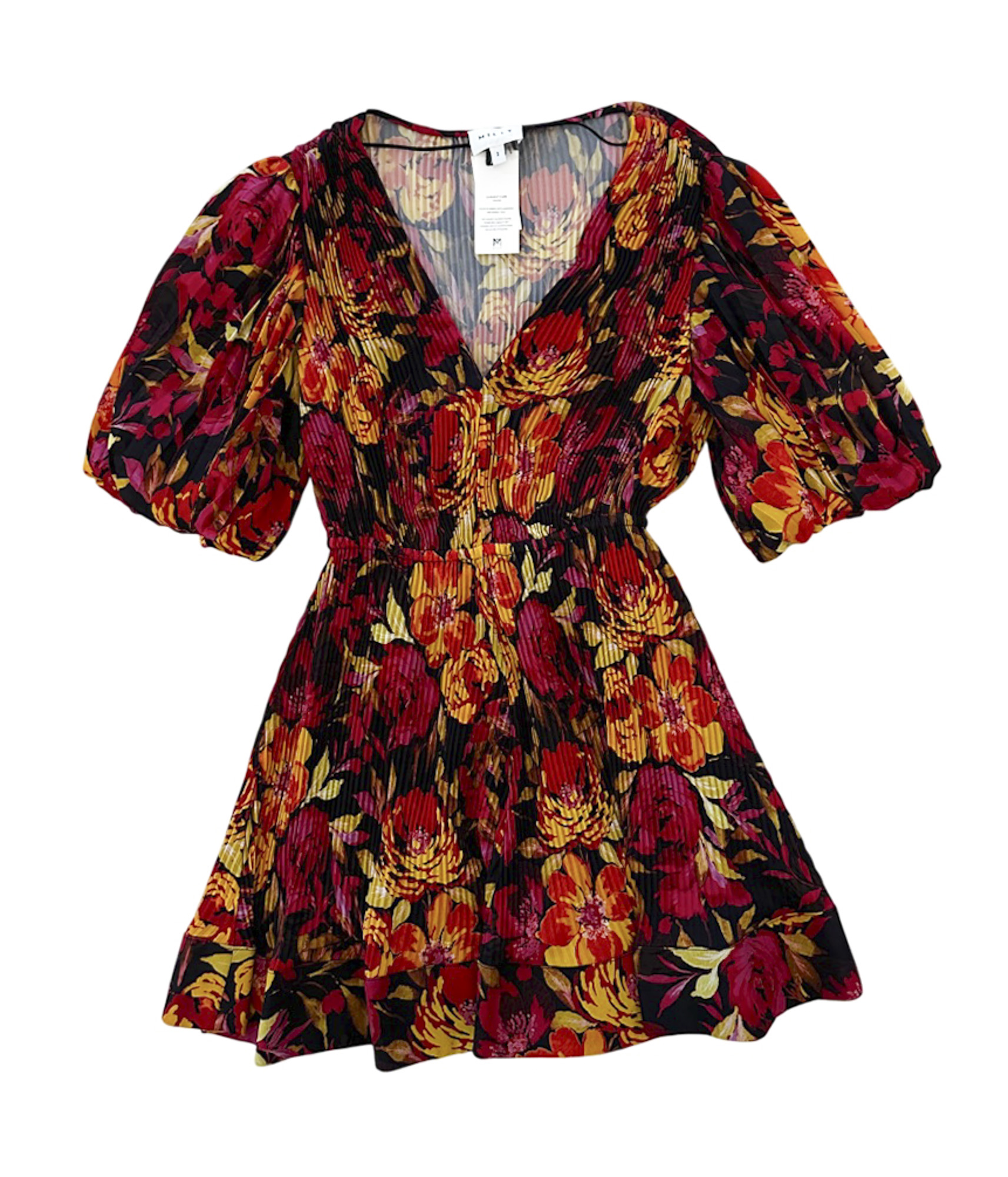 - Style: Elle Azalea Floral Print Pleated V-Neck Mini Dress