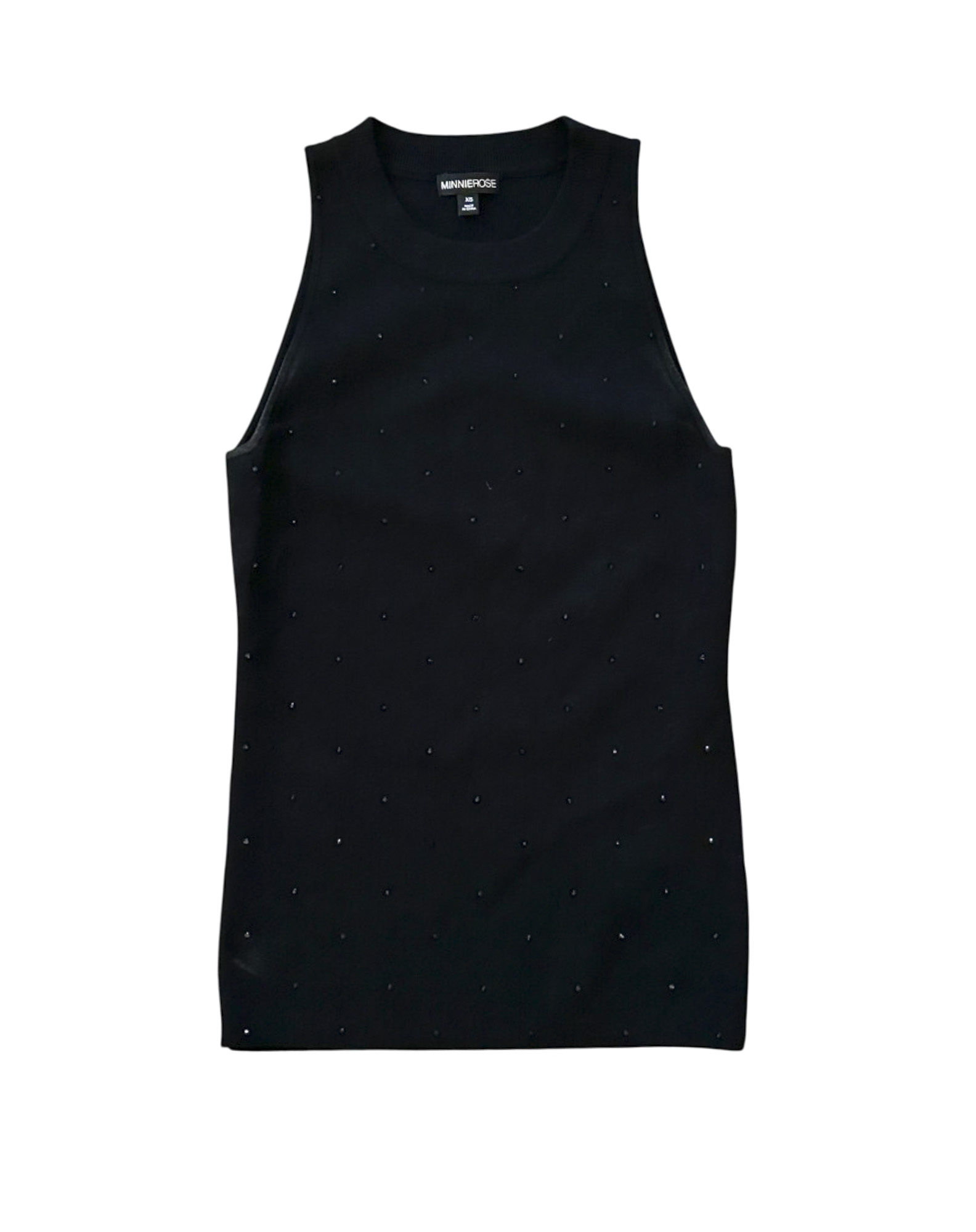 Minnie Rose Black Embellished Knit High Neck Sleeveless Tank Top Blouse Size XS