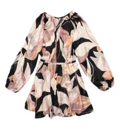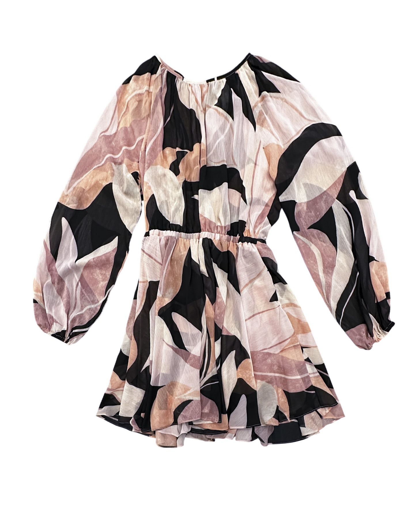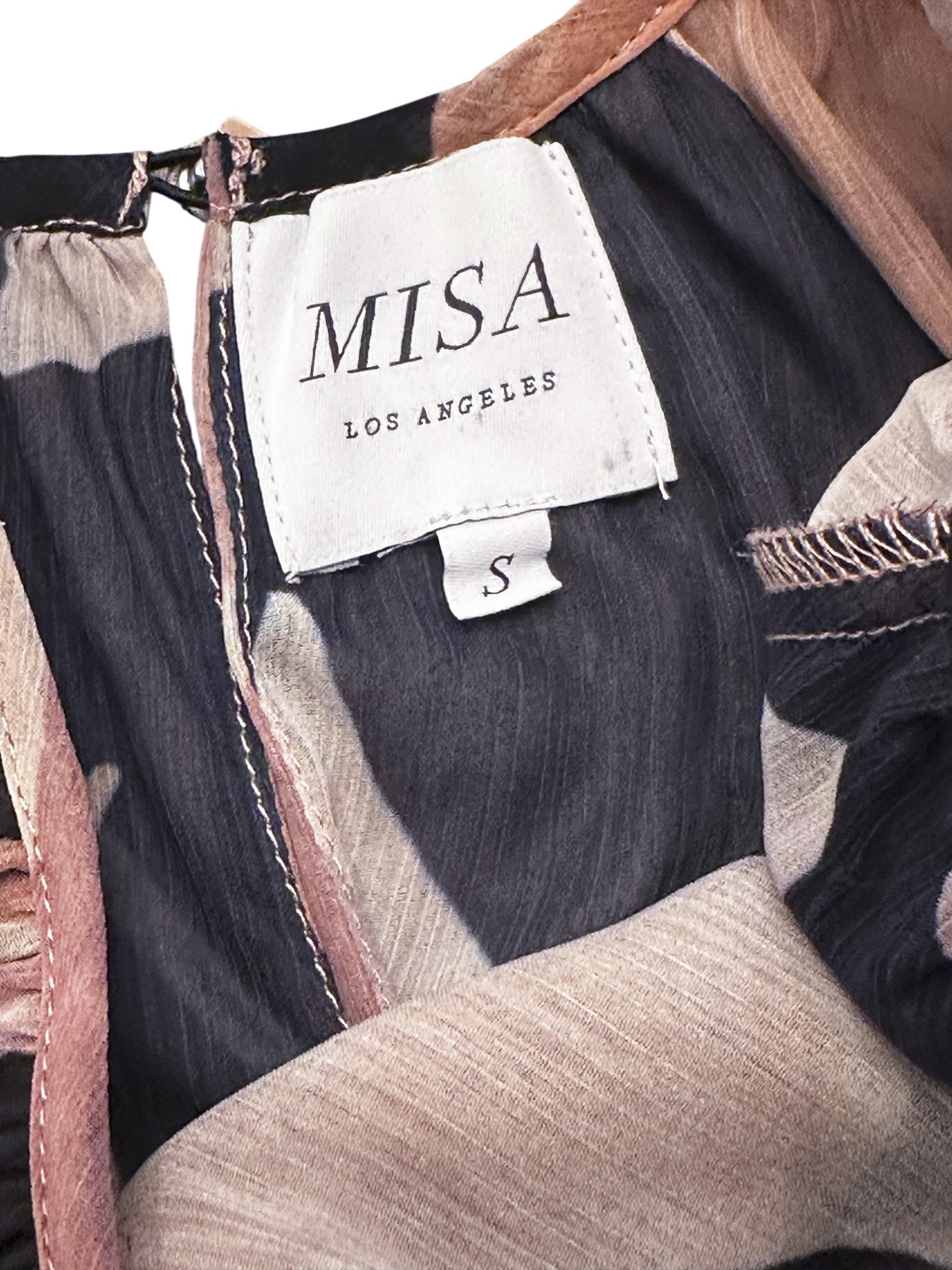 MISA Los Angeles Anthea Pink Printed Chiffon Tiered Mini Dress Small