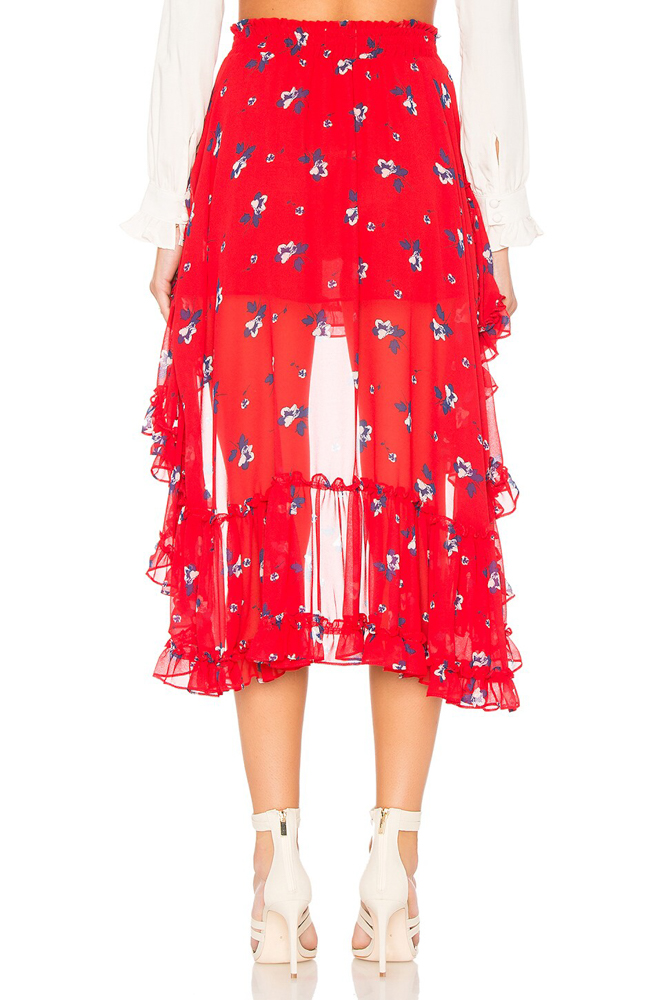 - Style: Camelia Floral Print Tiered Ruffle Maxi Skirt