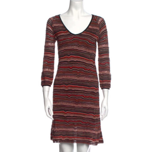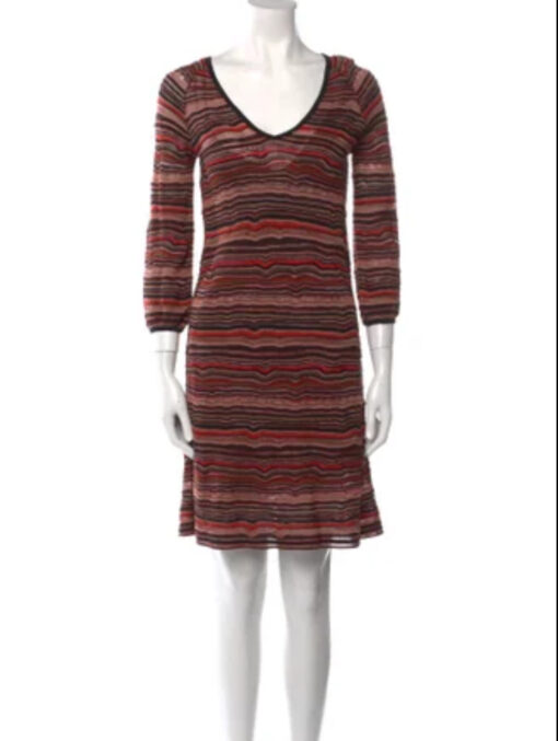 Missoni Striped Knit V-Neck Knee Length Dress Size 42 Italy