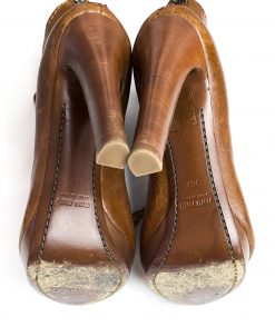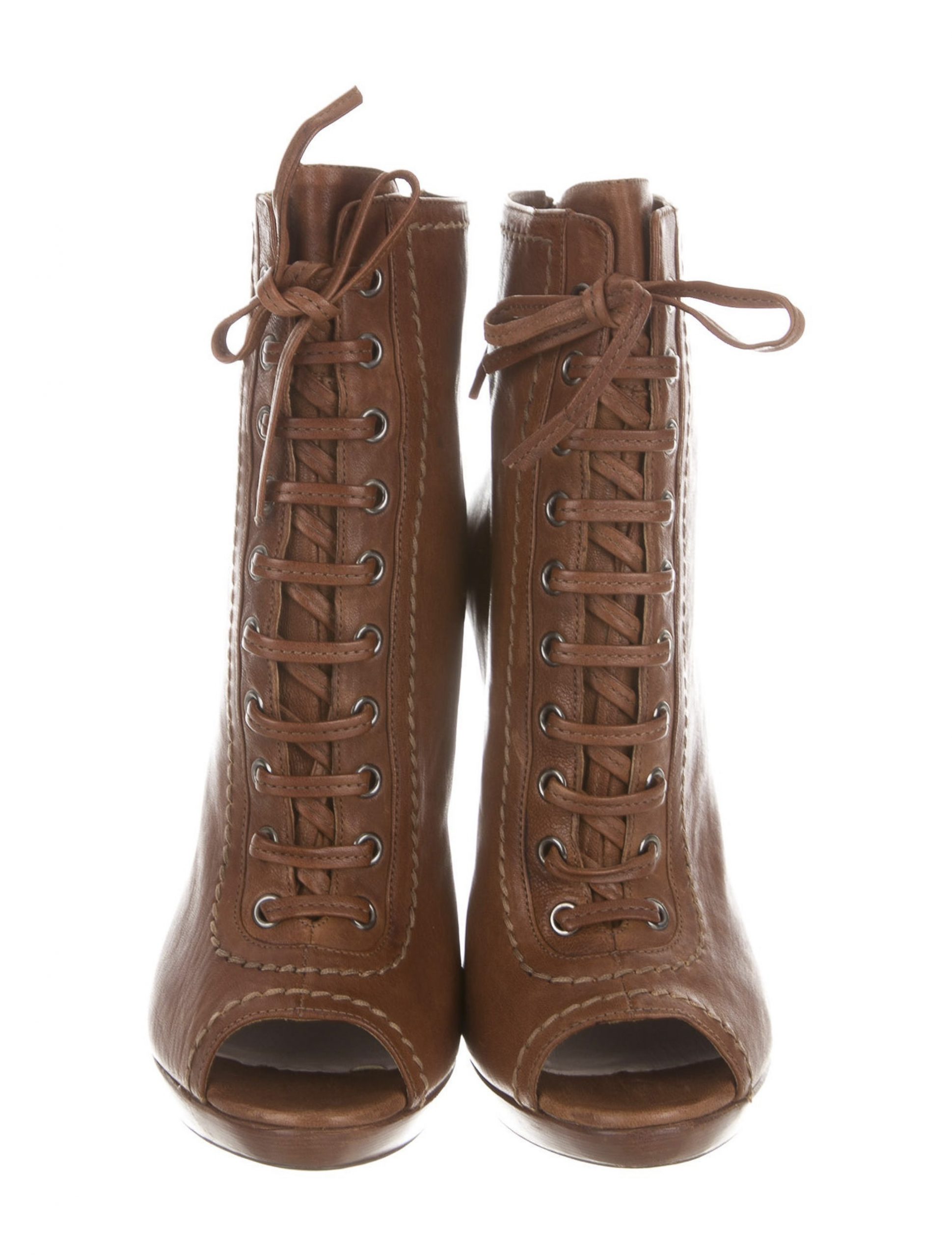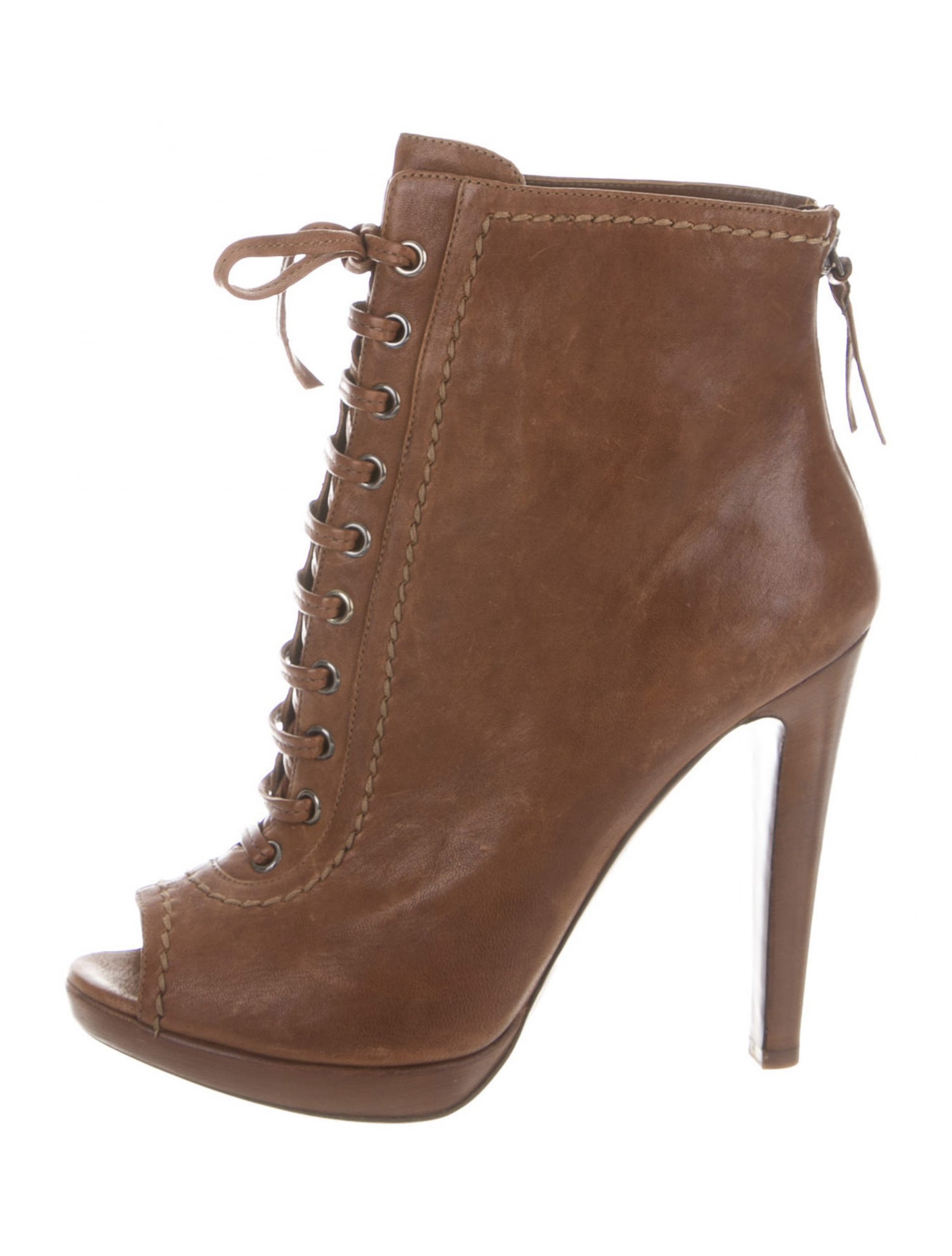 - Style: BROWN LEATHER OPEN TOE LACE UP BOXER BOOTIES