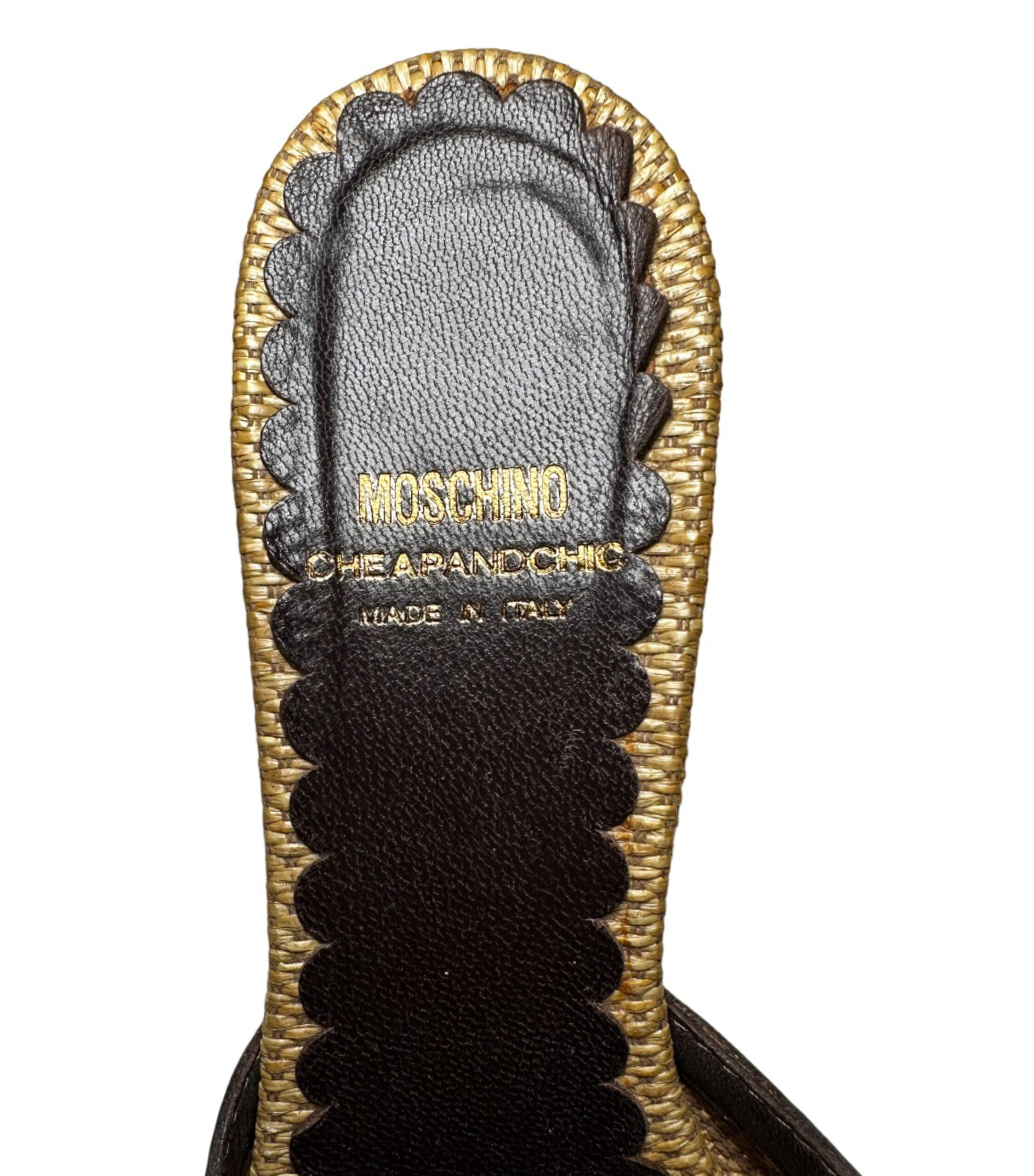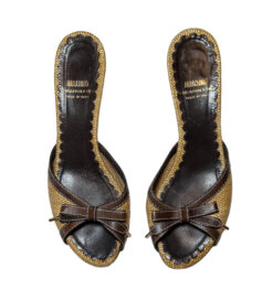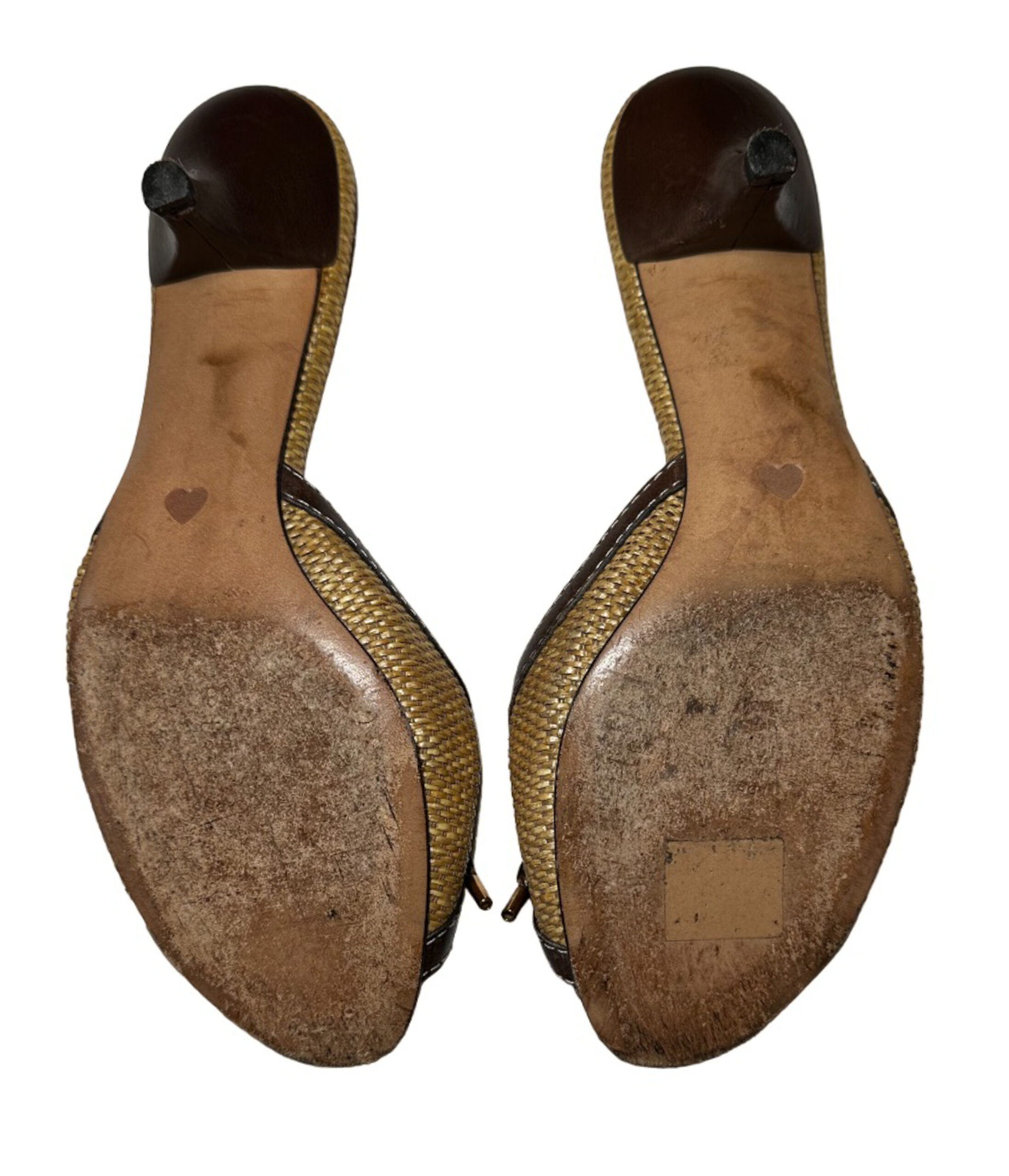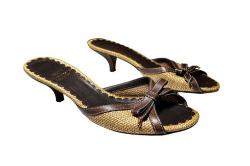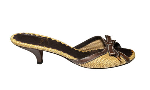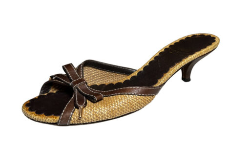 - Style: Beige Raffia Rattan Leather Slides Mules Sandals Heels