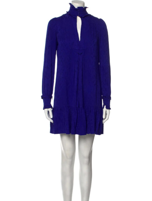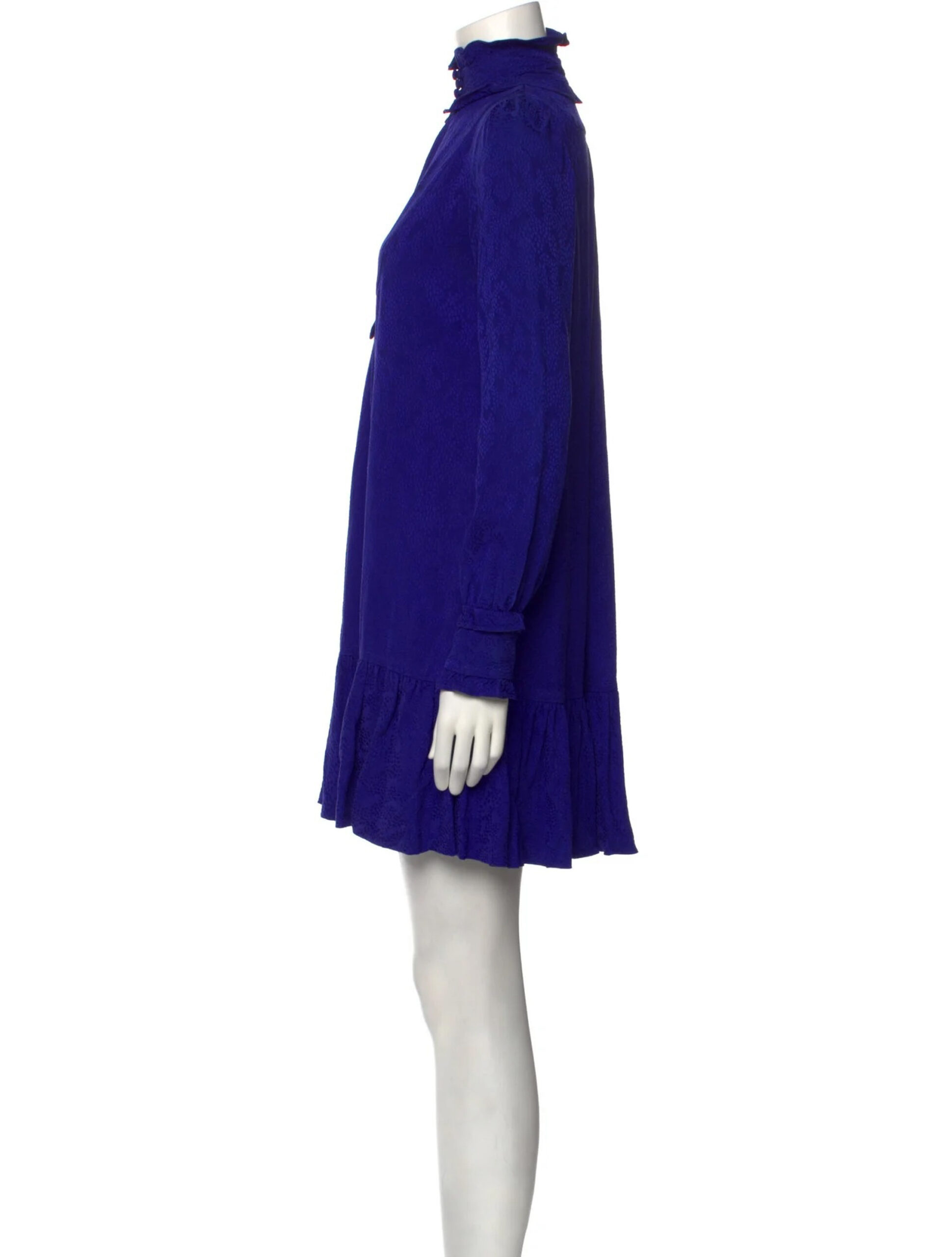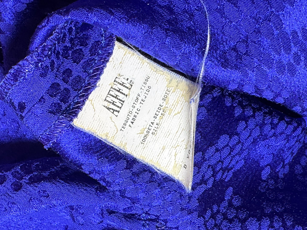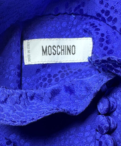 Moschino Italy Vintage Blue Silk Long Sleeve Mock Neck Dress Size 42/8